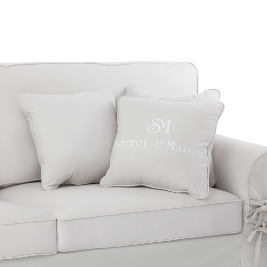 Уютный диван Secret De Maison BUTTERFLY из коллекции MAISON, выполненный в традиционном бельгийском стиле, - настоящий хит классического дизайна и одна из самых популярных моделей на протяжении многих десятилетий. Секрет успеха дивана в сбалансированном сочетании простоты и сдержанной роскоши, элегантности и деревенского уюта. Декоративные ленты-завязки на углах, плавные линии подлокотников и многослойная композиция с множеством мягких подушек выгодно выделяют диван BUTTERFLY в интерьере. На нем можно комфортно расположиться для продолжительного отдыха с любимой книгой или перед телевизором. Съемные чехлы подушек и сиденья помогут сохранить изначальный вид изделия, сделают уход за ним простым и приятным. Тканевая обивка из прочного натурального хлопка не мнётся, не меняет форму, пропускает воздух, экологична и гипоаллергенна. Для чехлов и обивки рекомендована сухая чистка. Благодаря качественной ручной работе и надежному каркасу из массива березы, диван долгие годы будет радовать вас своим первоначальным видом. Модель идеально сочетается с мебелью из коллекции MAISON, поставляется в собранном виде.
