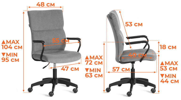 - Габаритная глубина кресла (от крайней задней точки спинки до передней точки сиденья) 57