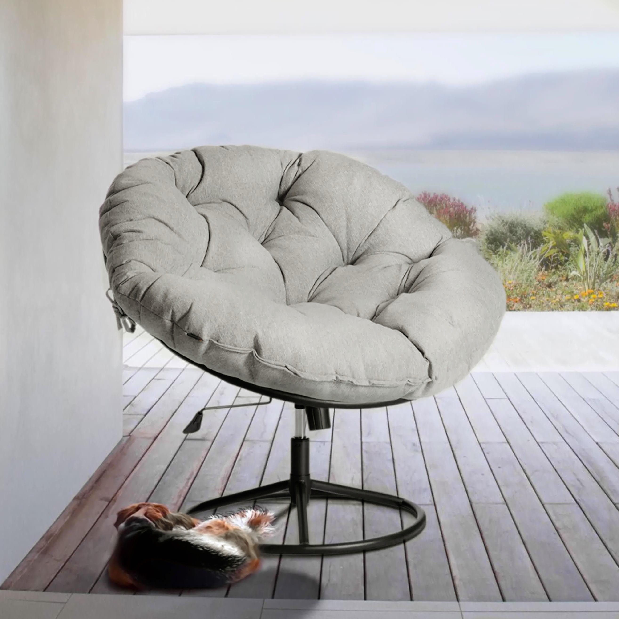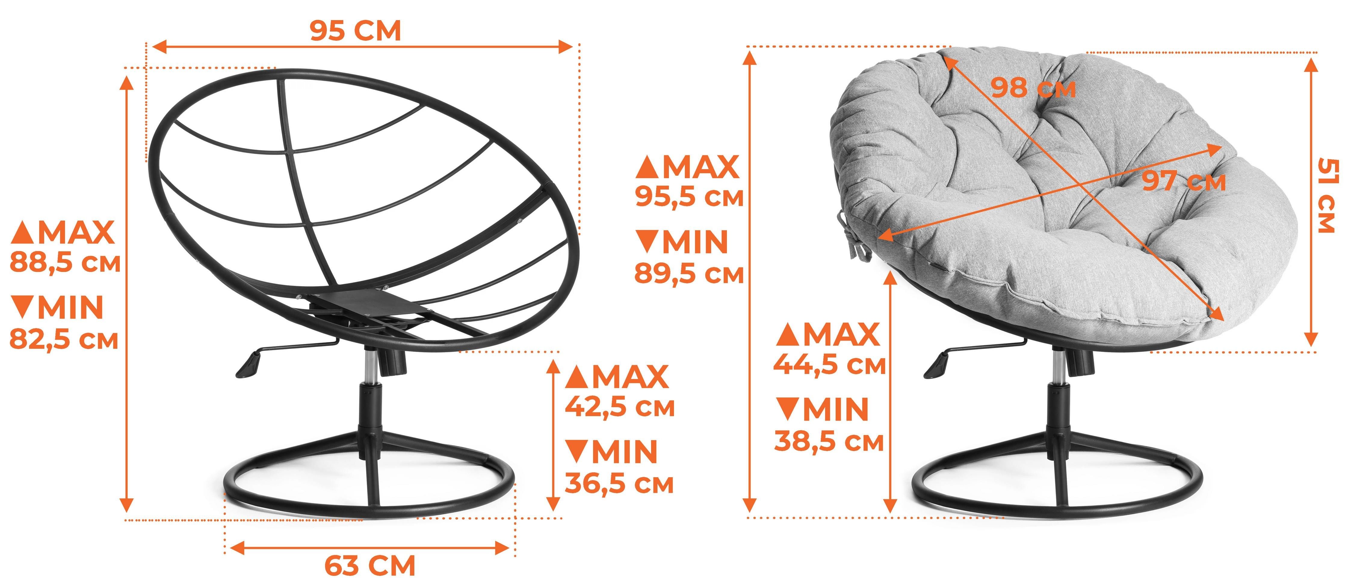 Кресло Cloud Home/Клауд Хоум из коллекции Уютный дом – оригинальное решение для создания стильного, современного интерьера в вашем пространстве. Привлекательная модель будет прекрасно смотреться не только на веранде или террасе загородного дома, но также в гостиной, столовой или студии. Надежный металлический каркас, газлифт 3 класса, устойчивая крестовина, комфортное сиденье, современный дизайн – кресло придется по душе даже самым требовательным владельцам. Модель вращается в любом направлении, регулируется по высоте специальным рычагом и оснащена механизмом качания. В комплект входит небольшая подушка сиденья для лучшего комфорта, которая крепится к каркасу, и мягкое вместительное сиденье. Такое сочетание позволяет расположиться максимально удобно и расслабиться после напряженного дня. Подушки серо-бежевого цвета, изготовлены из современной, модной ткани рогожка, она устойчива к износу и загрязнениям, не деформируется при активном использовании, не требуют специального ухода. Элегантное кресло из коллекции Уютный дом практично и функционально, удивит вас своей долговечностью и надежностью, станет ярким и необычным акцентом в вашем доме, добавляющим выразительность, уют и индивидуальность интерьеру. Максимальная нагрузка 120 кг.