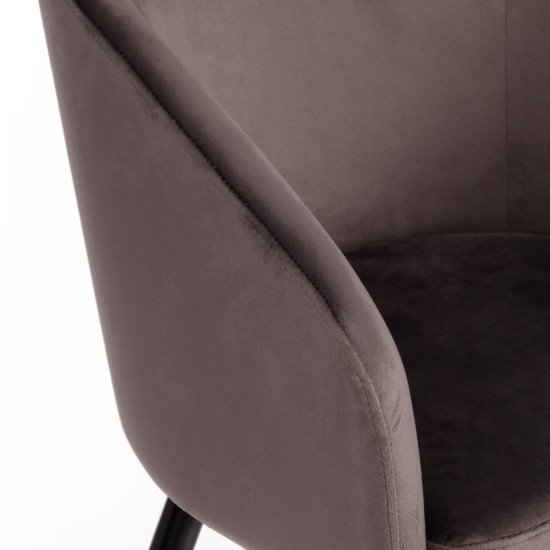 Удобное кресло LA FONTAIN из коллекции Modern хорошо смотрится в любой комнате: гостиной, спальне, детской, рабочем кабинете, столовой, кафе. В нем будет приятно расположиться после тяжелого рабочего дня. Обволакивающая форма спинки и мягкое сиденье обеспечат максимальный комфорт своему владельцу. Удачная комбинация металла черного цвета и обивки благородного серого цвета будет выигрышно смотреться в любом интерьере. Металлические ножки делают модель устойчивой, надежной, основательной. Приятная на ощупь и практичная в использовании обивка из вельвета серого цвета надолго сохранит свой первоначальный вид. Вельвет обладает повышенной износостойкостью, не протирается, не выцветает. Кресло LA FONTAIN станет любимым предметом для отдыха в вашем доме. Кресло подойдёт для гостиной, для кухни или для спальни. Кресло очень простое в сборке, инструкция по сборке прилагается.