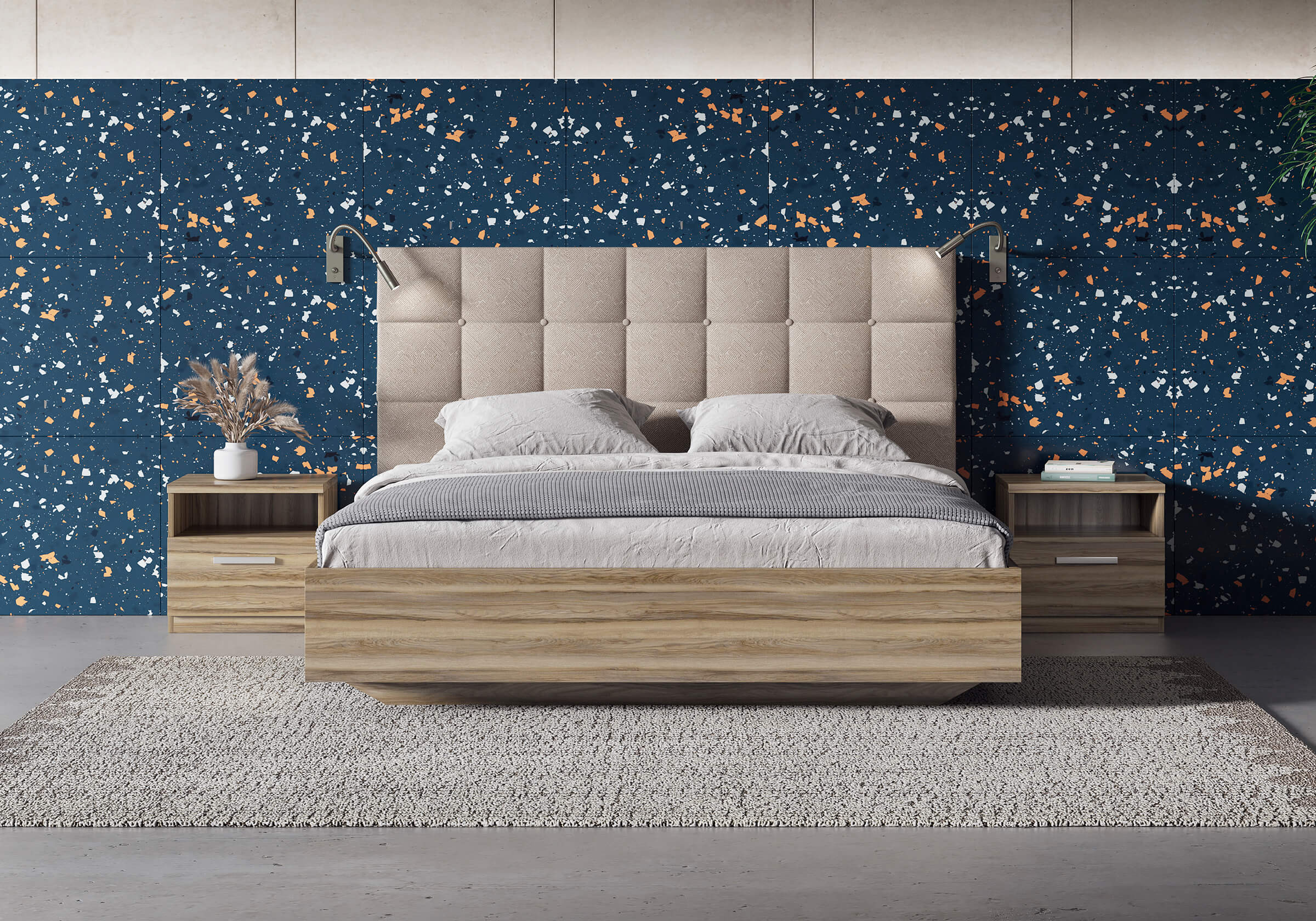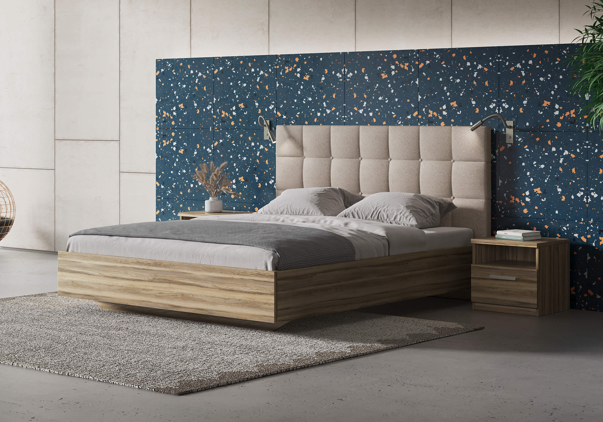 Luiza – комбинированная кровать с изголовьем, украшенным декоративными пуговицами, которые исполнены в той же ткани, что и изголовье. Симметричность линий, сдержанность формы и декора делают модель универсальной для любого интерьера. Кровать будет уникальной благодаря большой коллекции тканей и эко-кожи.