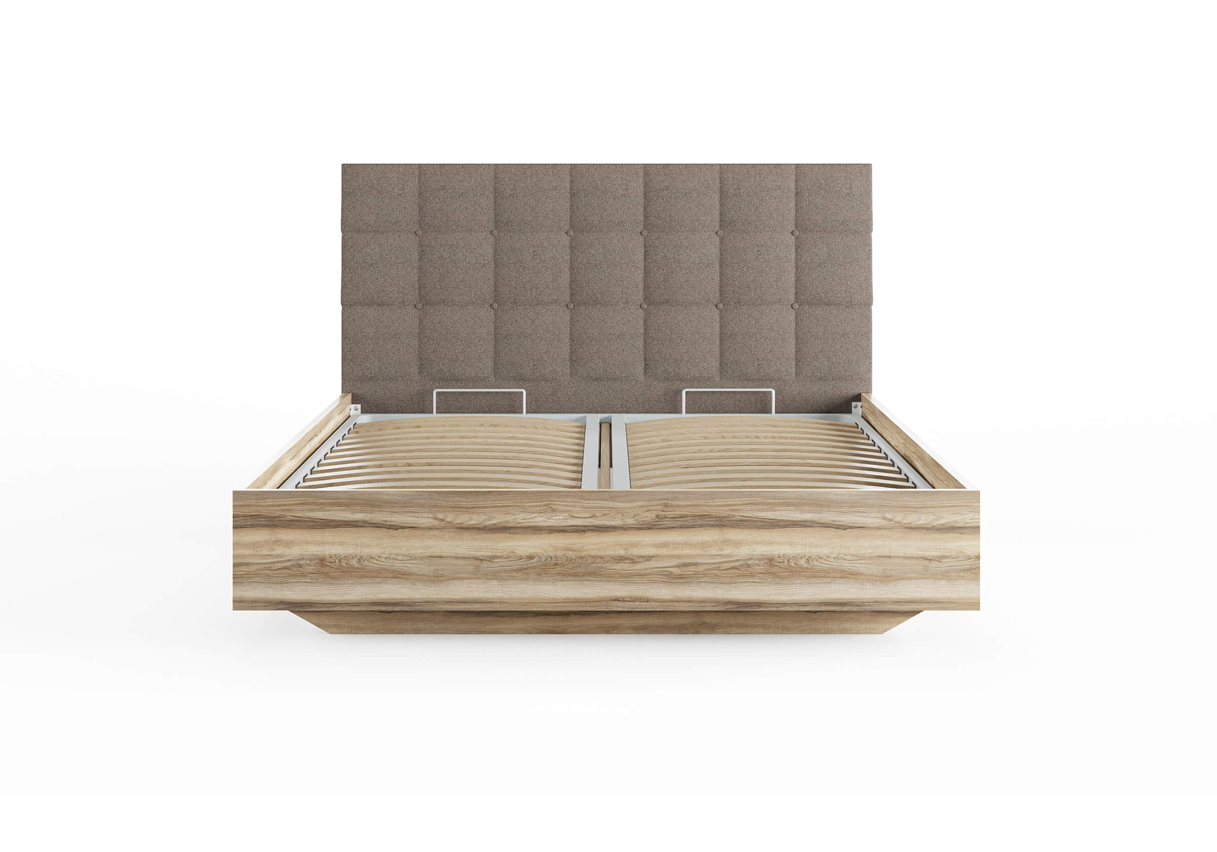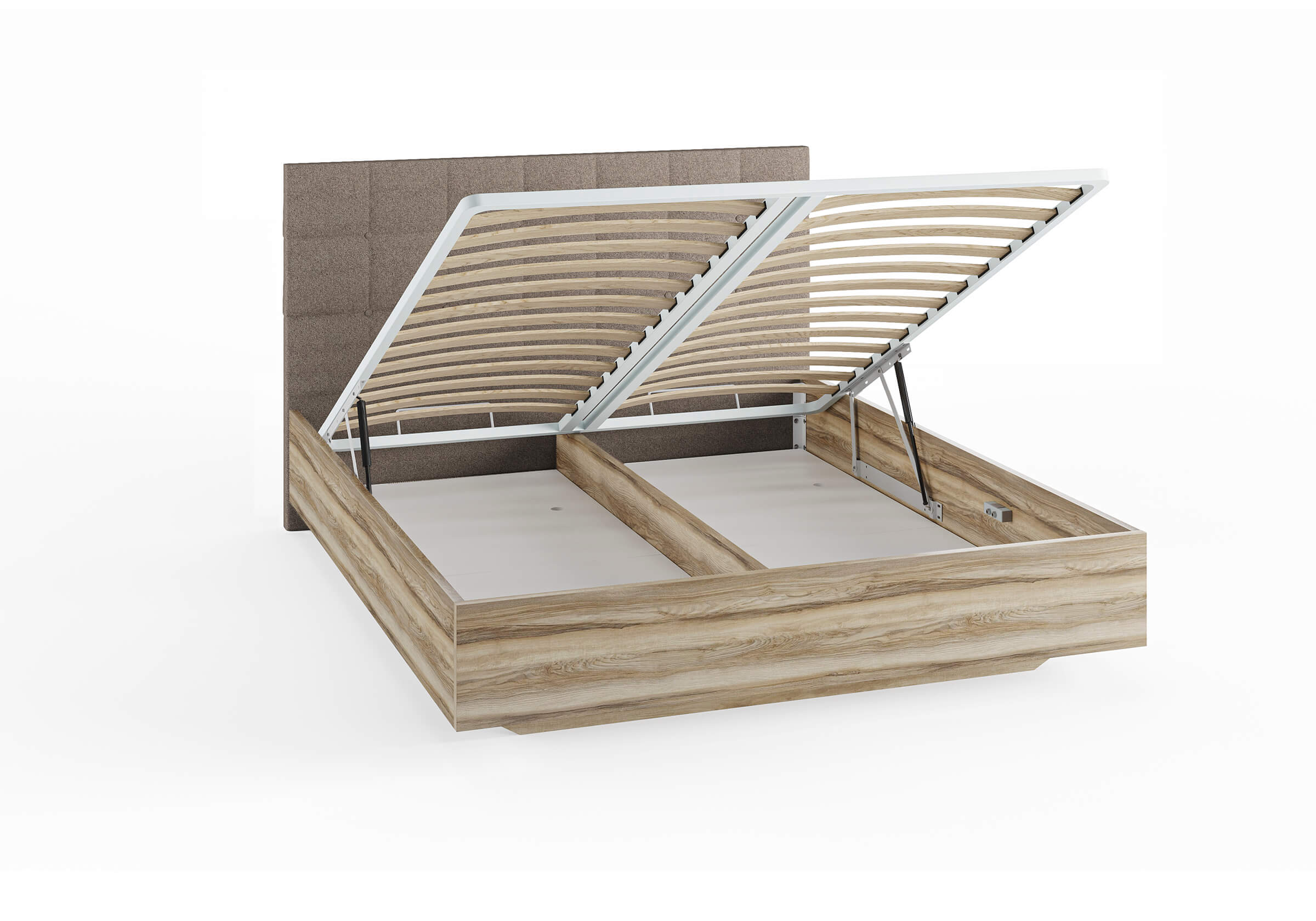 Царги из ЛДСП увеличенной толщины придадут строгость и надежность. Благодаря сочетанию усиленных металлических уголков, ребер жесткости и эксцентриковой стяжке конструктив кровати получается жёстким и прочным.- Ширина —140