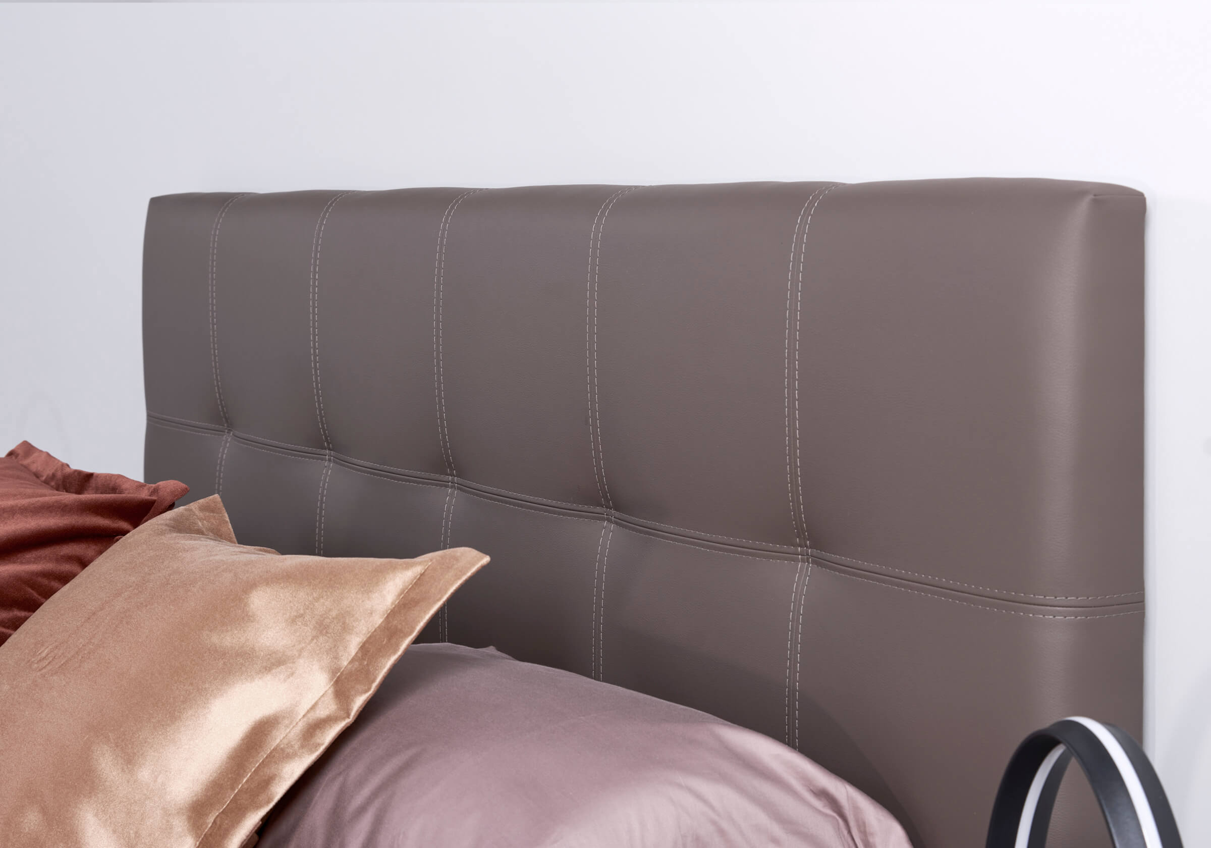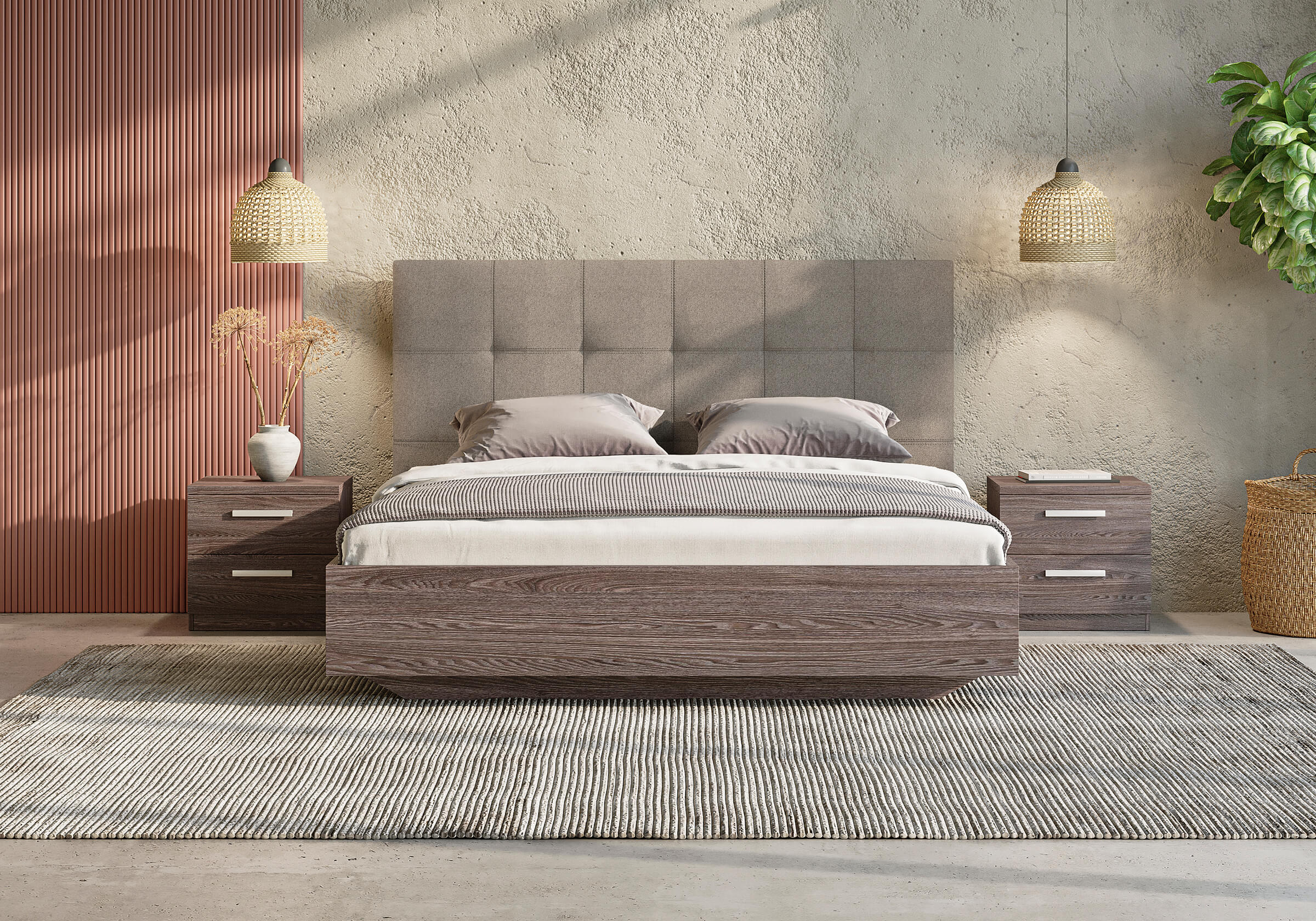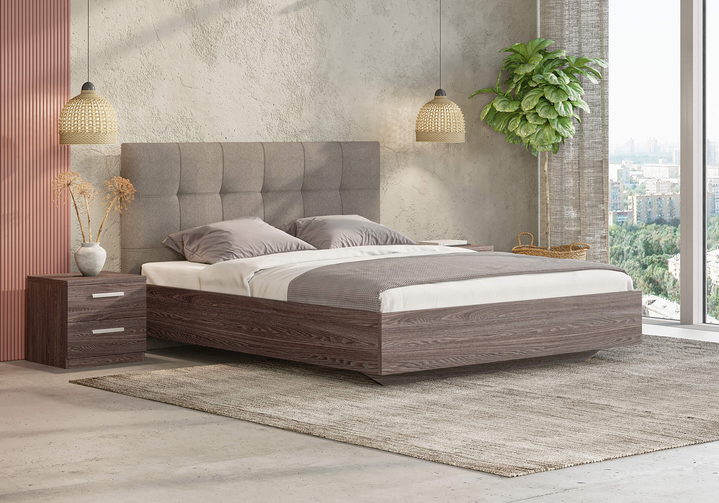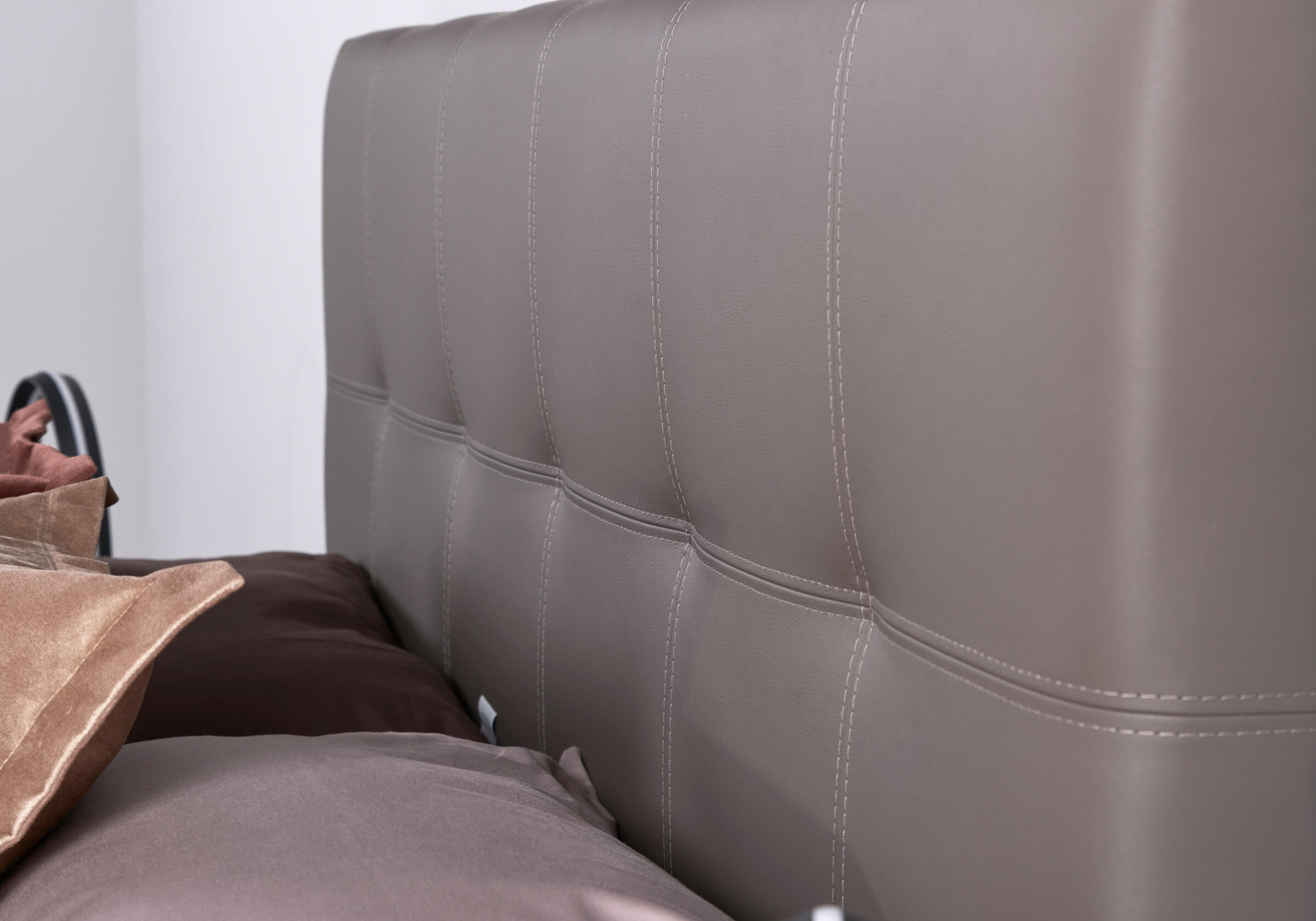 Vena – комбинированная кровать со стильным мягким изголовьем. Создает атмосферу уюта. Изголовье – со строгими квадратами. Двойная декоративная строчка вдоль них добавляет объема и элегантности. Сдержанный дизайн данной модели универсален для современных интерьеров. Кровать будет уникальной благодаря большой коллекции тканей и экокожи.