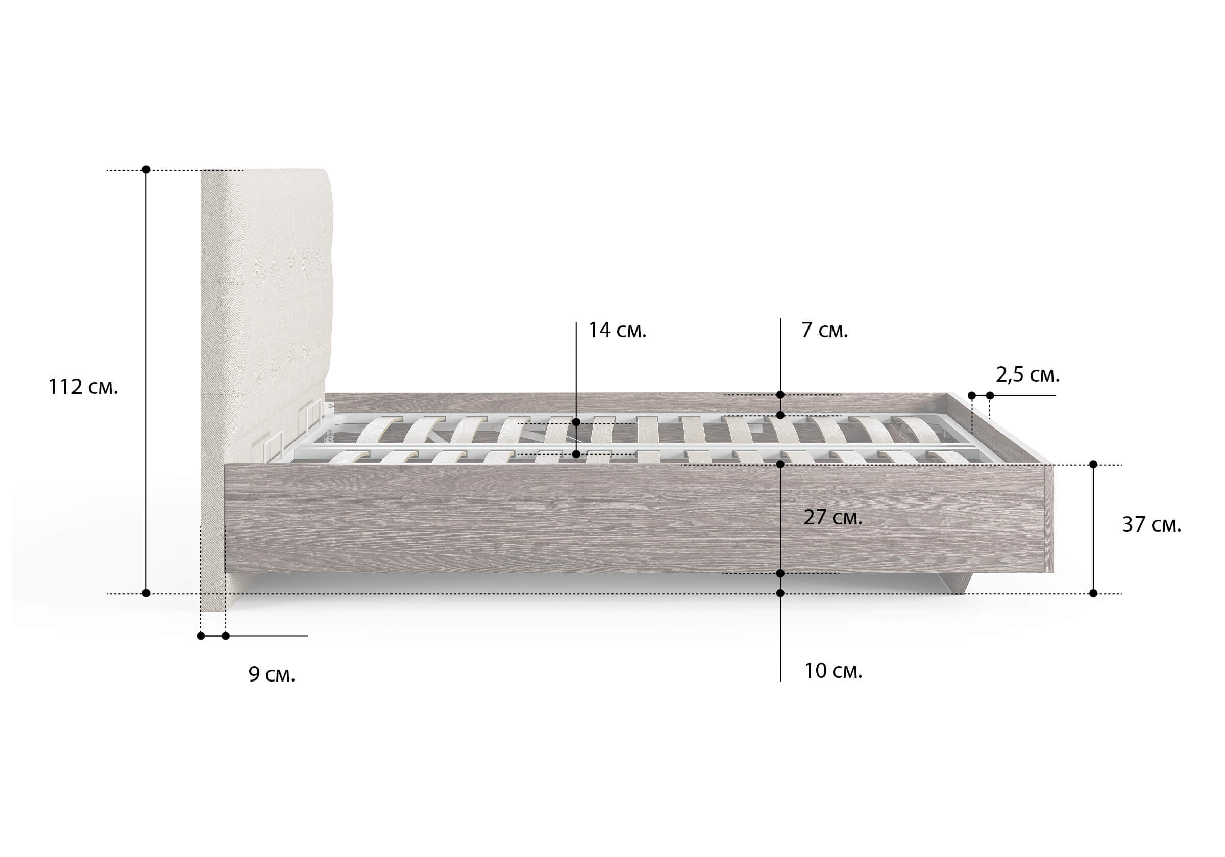 Царги из ЛДСП увеличенной толщины придадут строгость и надежность. Благодаря сочетанию усиленных металлических уголков, ребер жесткости и эксцентриковой стяжке конструктив кровати получается жёстким и прочным.- Ширина —80