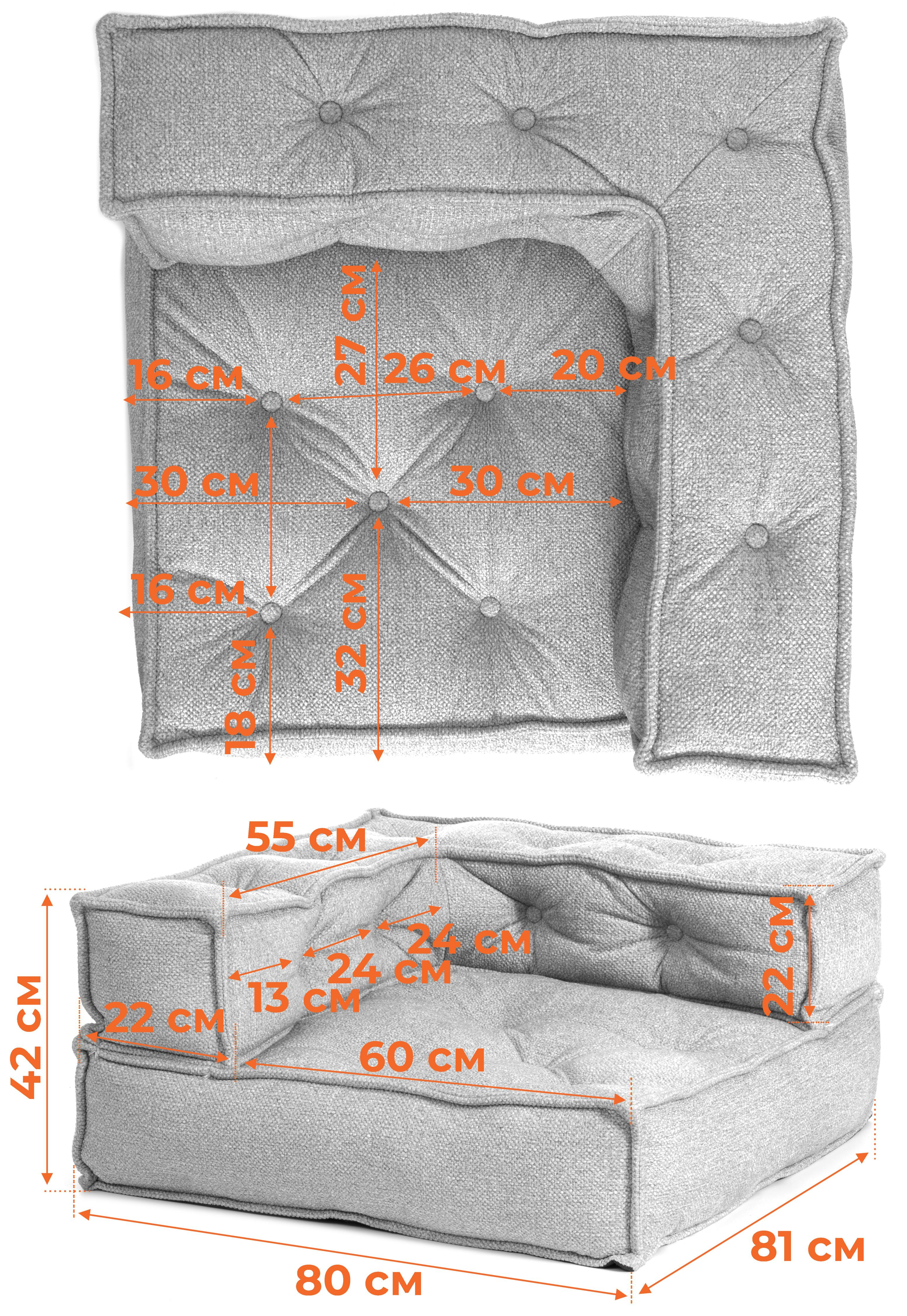 Модуль мягкий угловой Miracle велюр/букле, VT shape silver, 82x81x24 см в Ростове-на-Дону отзывы
