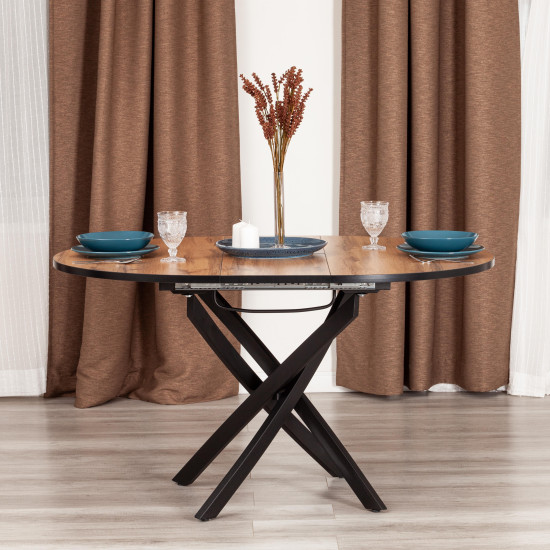 Стол MANZANA Дуб Вотан/чёрный 100 х 100+30 х 75 см