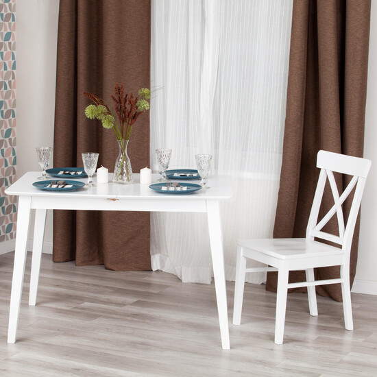 Стильный обеденный стол RETRO из Датской коллекции, выполненный в традиционном скандинавском стиле, создаст неповторимую атмосферу спокойствия и умиротворения в вашем доме. Простая лаконичная форма модели в сочетании с белым цветом добавит ноты уюта и комфорта в ваш интерьер. Прочный каркас стола и ножки выполнены из натуральной древесины - массива гевеи, практичная столешница - из МДФ. Надежный раздвижной механизм поможет увеличить площадь стола, что позволит разместить с комфортом от четырех до шести человек. Обеденный стол RETRO создаст интерьер актуальный вне времени, будет прекрасно смотреться с деревянными стульями RETRO и радовать Вас своей надежностью и первоначальным видом долгие годы. Стол подойдёт для гостиной, для кухни, для загородного дома, для ресторана или для кафе. Стол поставляется в разобранном виде, необходима несложная сборка по инструкции.