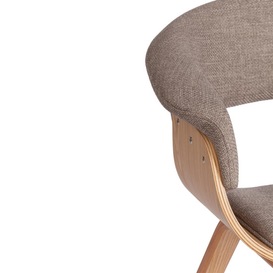 Его элегантная форма, выполненная из гнутой фанеры бука с отделкой из шпона клена, придаёт атмосфере естественность и теплоту. Обивка стула, выполненная из качественной рогожки, не только радует взгляд, но также отличается высокой износостойкостью (до 50 000 циклов по шкале Мартиндейла), что гарантирует долгий срок службы и лёгкость в уходе.