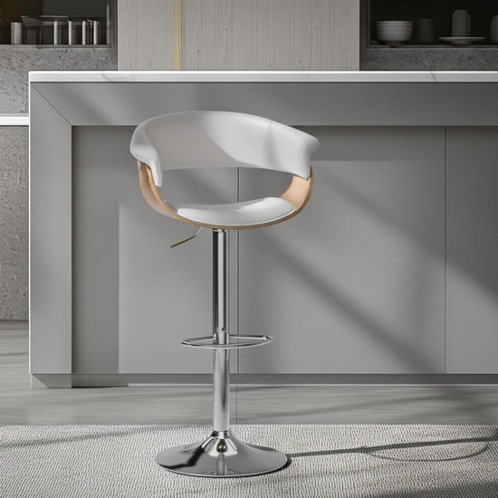 Барный стул VIMTA (mod.4021S) белый/натуральный/хром 60х51х91,5-112,5 см, высота сиденья 61,5-82,5 см