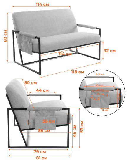 Диван Charli LUX — это истинное воплощение комфорта и современного стиля, идеально подходящее для различных интерьеров. Его прочный металлический каркас обеспечивает надёжность и долговечность, а обивка из износостойкой ткани не только элегантна, но и легко чистится, что делает это диван практичным выбором для повседневного использования. Лаконичный дизайн в стиле лофт и минимализм позволяют креслу Чарли Люкс гармонично вписаться в любой интерьер, будь то современная гостиная, уютное кафе, изысканный ресторан или стильный офис. Это диван не только функционально, но и служит ярким акцентом вашего интерьера, подчёркивая ваш вкус и внимание к деталям. Выбирая диван Charli LUX, вы выбираете стиль, комфорт и качество, которое будет радовать вас долгое время. Основные характеристики. Надежность и прочность: каркас выполнен из металлического профиля 20*20мм с толщиной стенки 1,5мм, что гарантирует долговечность. Каждый элемент тщательно изготовлен на автоматическом лазерном станке для точной сборки. Уникальный Комфорт: первое на рынке диван со смещённой перекладиной в глубину которое не мешает расположению ног, обеспечивая свободу движений. Идеальная отделка: высококачественное порошковое окрашивание исключает непрокрас и обладает матовой нежной шагренью, что придаёт изделию более премиальный вид. Наполнитель сиденья и спинки состоит из независимого пружинного блока + ППУ высокой плотности это даёт возможность комфортной посадки и быстро восстанавливается. Эргономика для всех: специально разработанный угол наклона спинки подходит для любой фигуры и обеспечивает максимальный комфорт. Уникальная защита: первое на рынке Диван со съёмной, тканевой мобильной защитной накладкой подлокотника с одной стороны с другой стороны подлокотник с удобным двойным карманом который гармонично дополняет кресло. Подлокотники являются универсальными, их можно менять местами. Дизайн: диван гармонично впишется в любое современное пространство. Простота сборки: диван комплектуется пошаговой инструкцией и требует всего лишь 6 винтов для сборки (в цвет каркаса). Компактная упаковка: упаковка разработана для защиты при транспортировке, Диван поставляется в 5-слойном картоне. Нагрузка 120 кг.