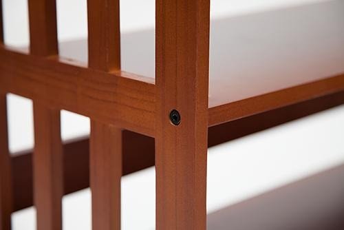 Этажерка с полками выполнена из натурального дерева в сочетании с деталями из МДФ. Все материалы, использованные при изготовлении данной модели, прочны и надежны, что обеспечит высокую прочность и долгий эксплуатационный срок этажерки.