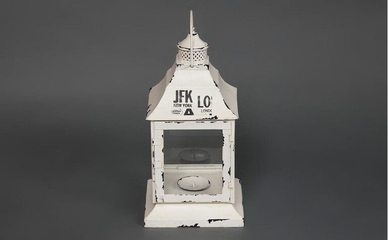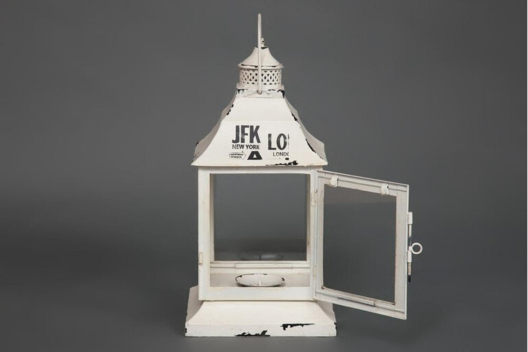 Фонарь для свечей ROMANTIQUE из коллекции LOFT ART выполнен из металла со стеклянными стенками. Металл окрашен белой краской и декоративно состарен. Одна из стенок фонаря открывается для установки свечи внутрь.