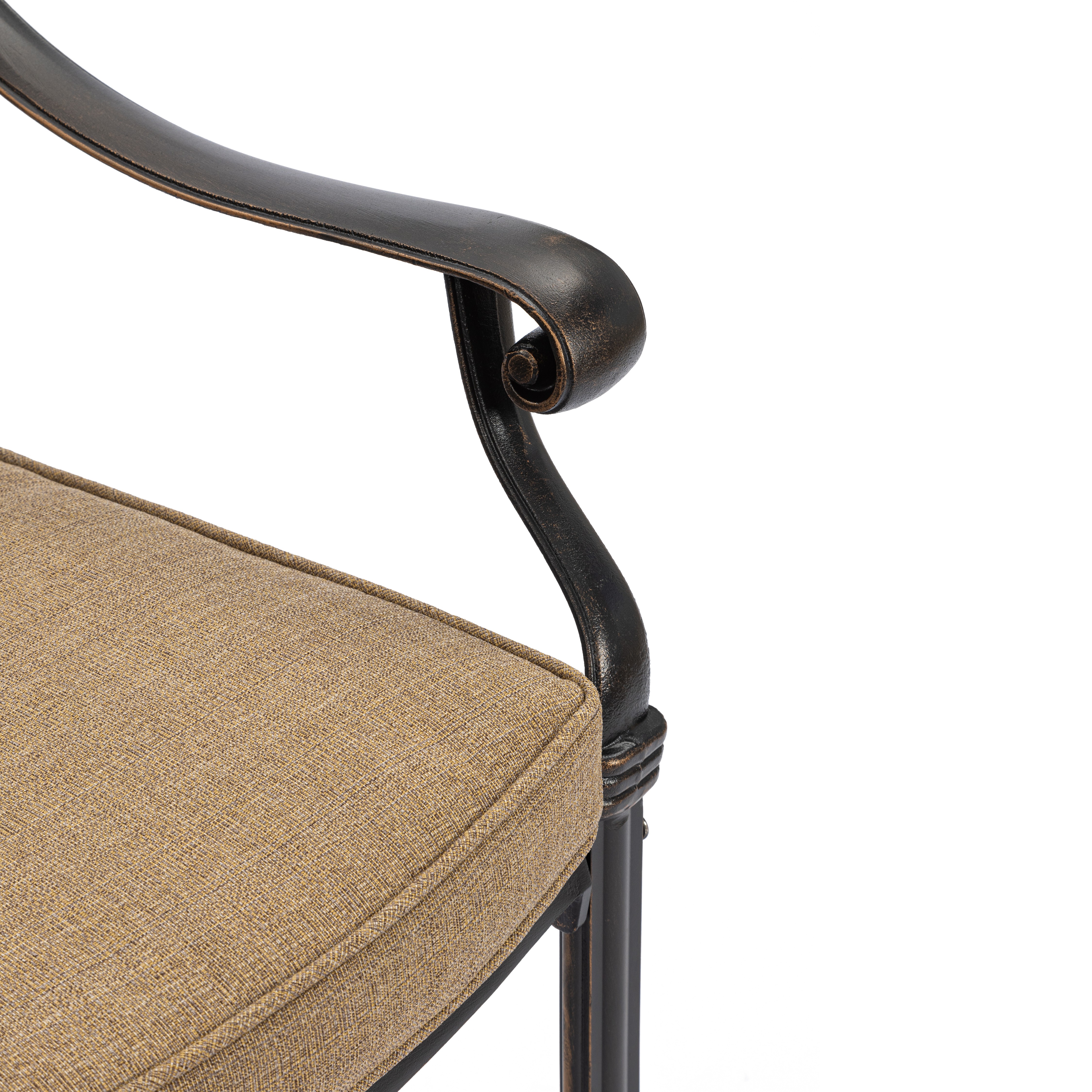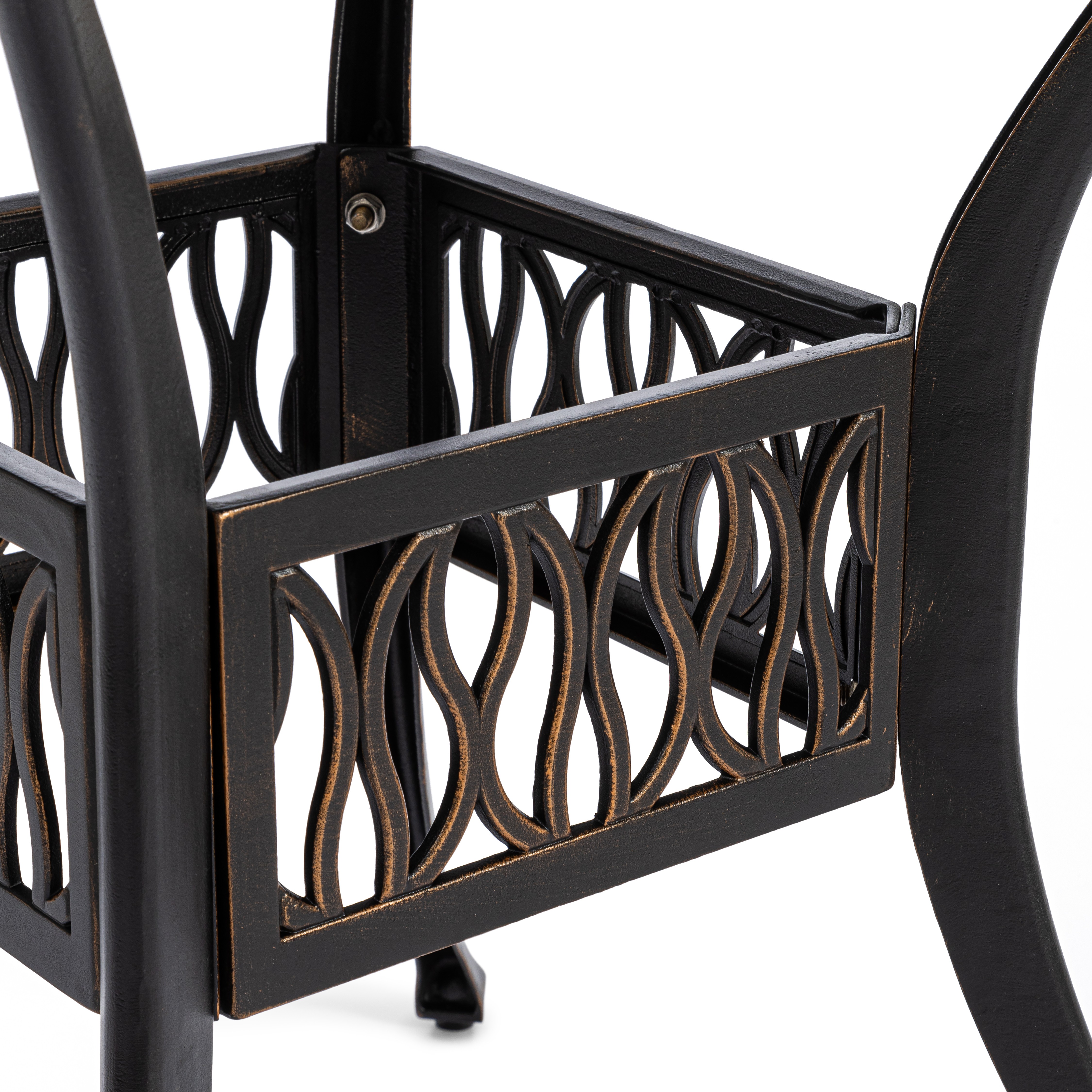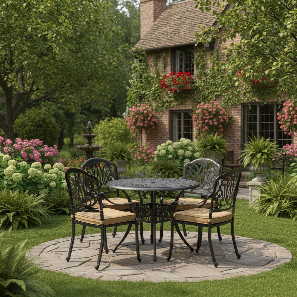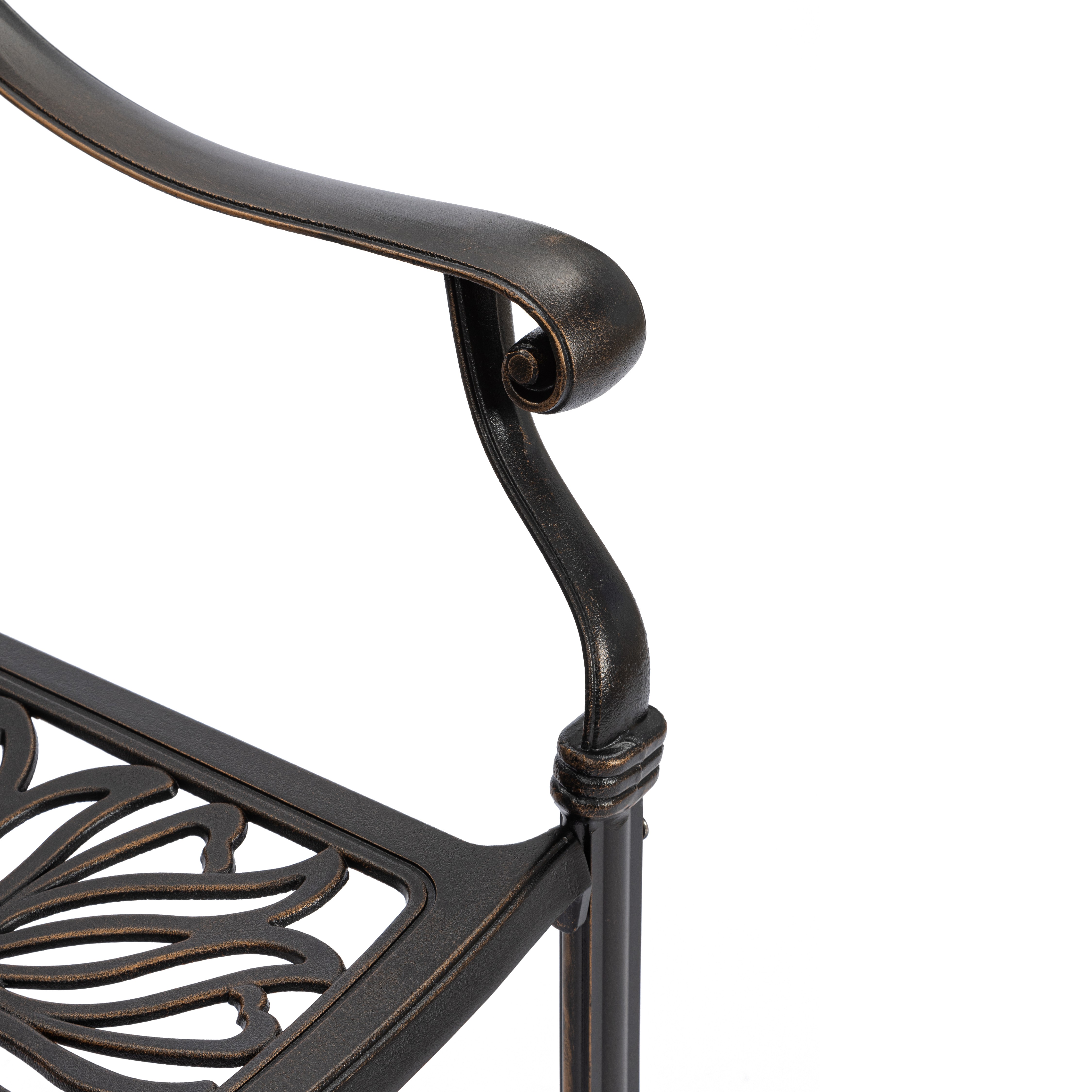 Изысканные кованые узоры, выполненные с особым мастерством, придают комплекту неповторимый шарм и визуальную лёгкость. Декоративная художественная ковка гармонично вписывается в любой ландшафтный дизайн — от классического до прованского стиля. Каркас изготовлен из прочного стального сплава с защитным порошковым напылением, что гарантирует высокую устойчивость к коррозии, механическим нагрузкам и длительный срок службы.