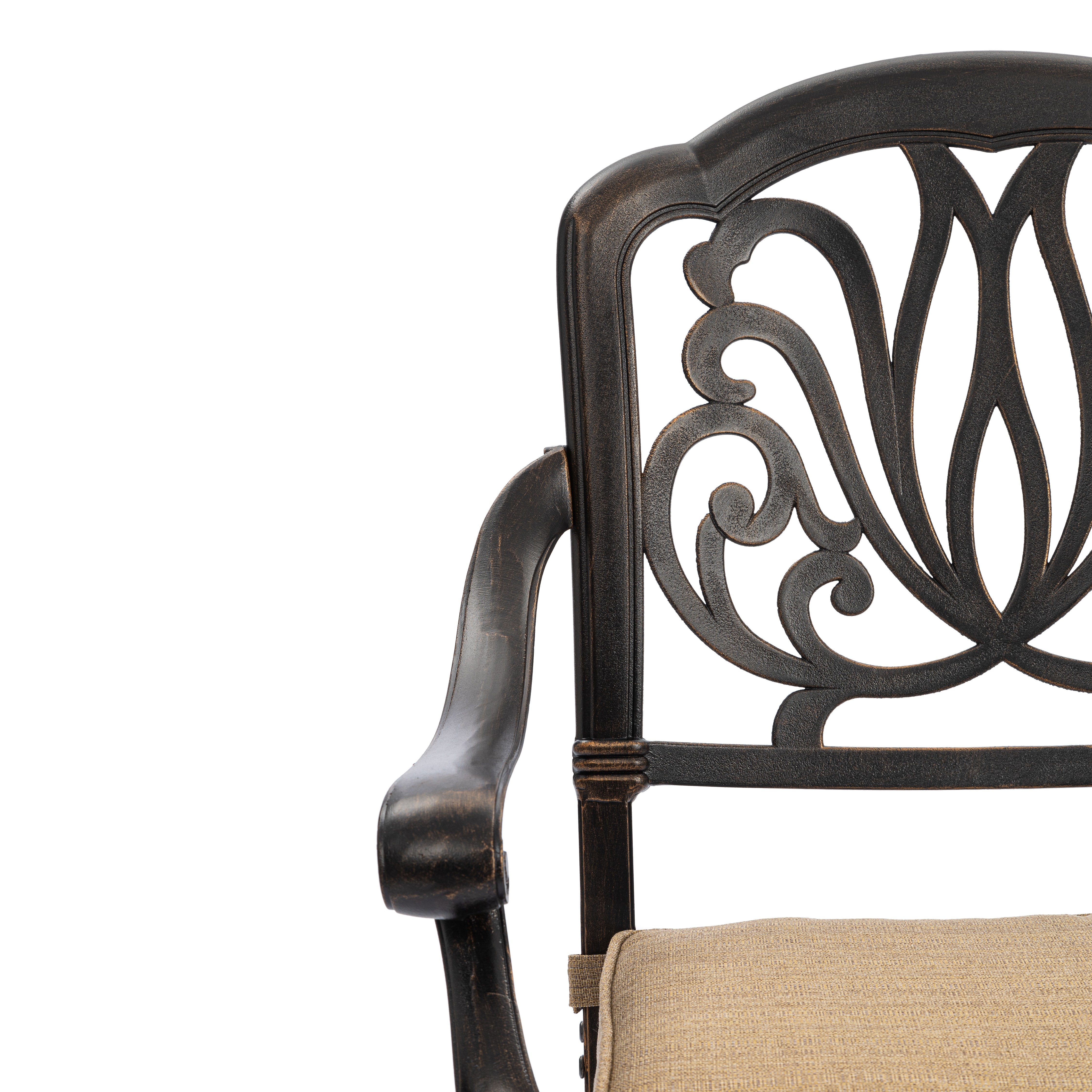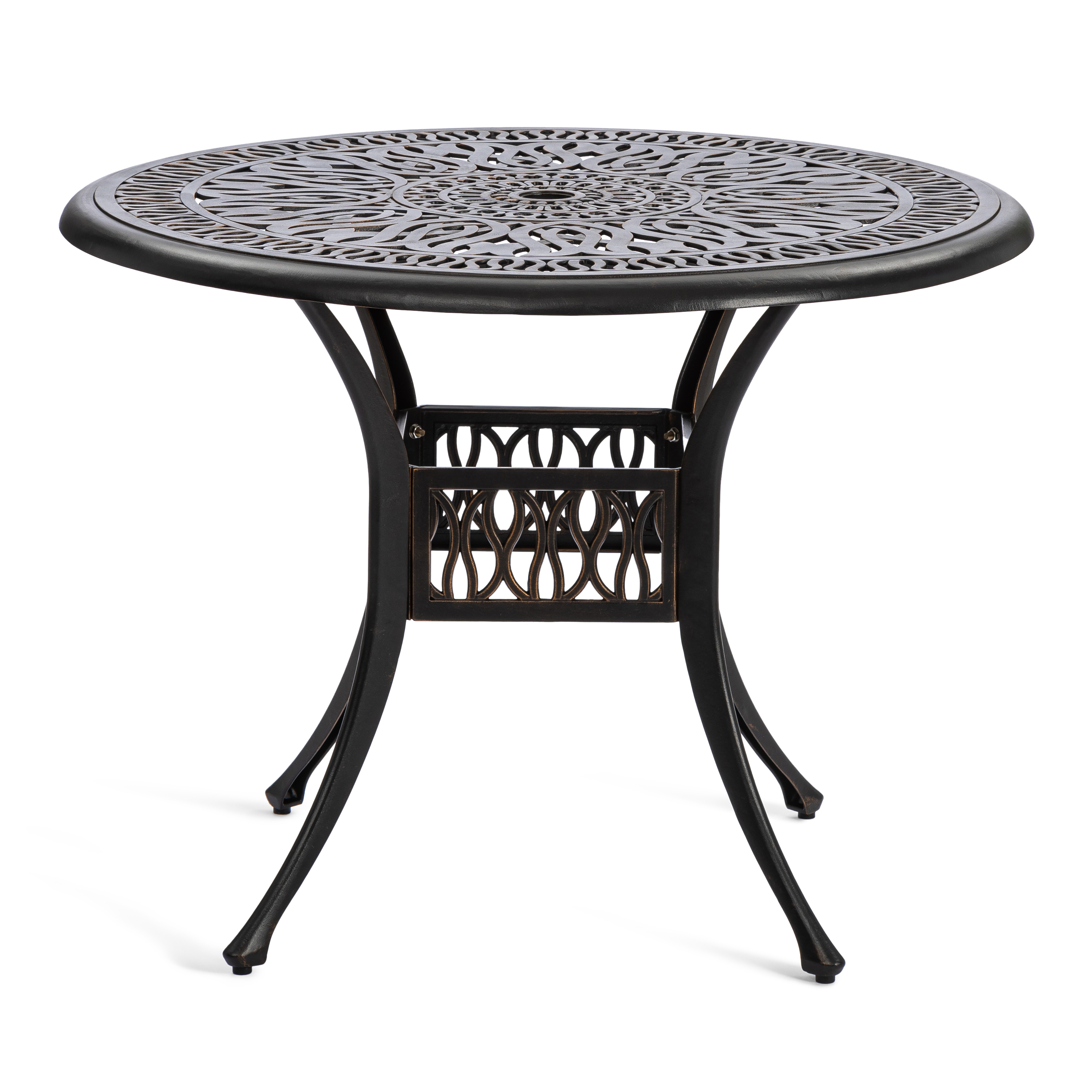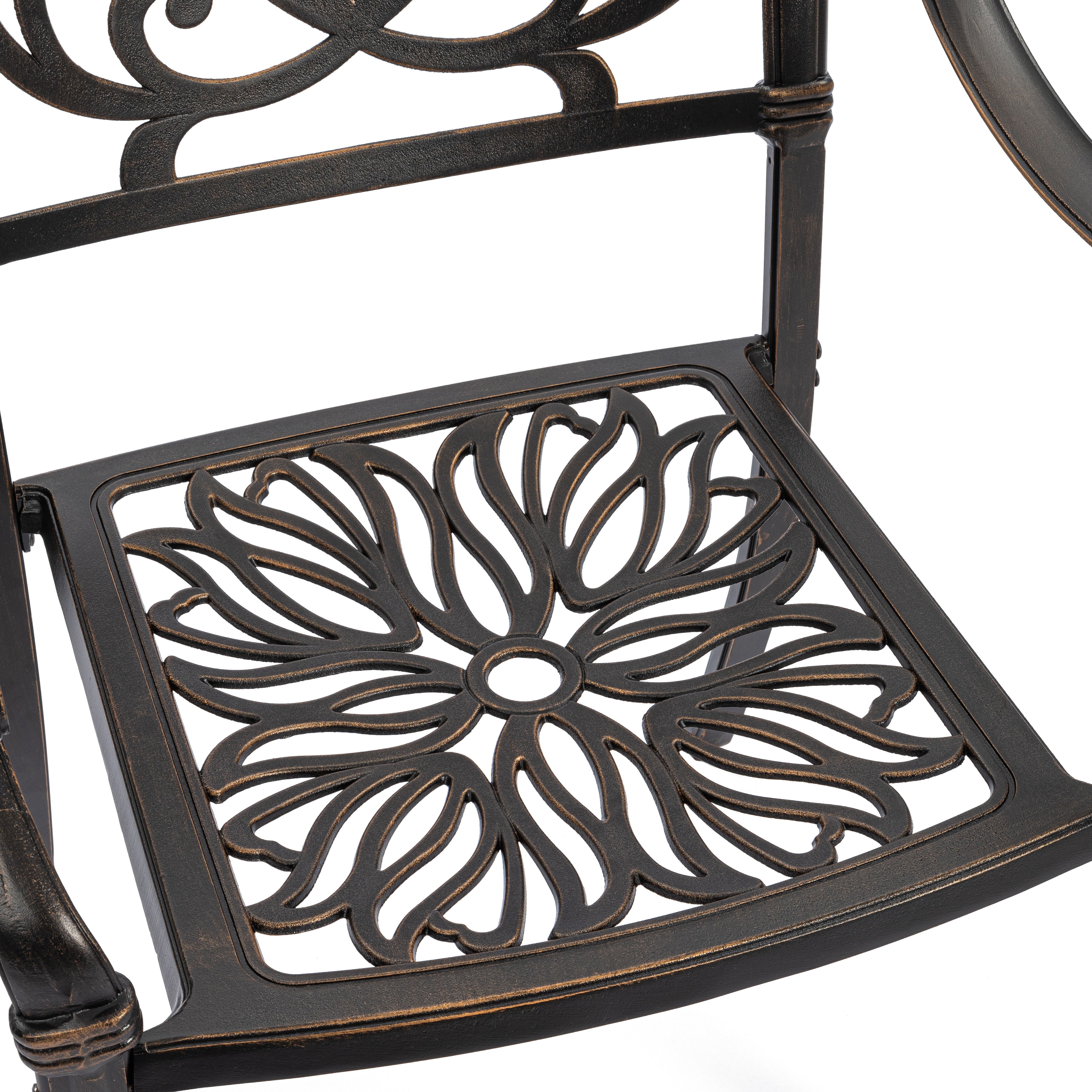Изысканные кованые узоры, выполненные с особым мастерством, придают комплекту неповторимый шарм и визуальную лёгкость. Декоративная художественная ковка гармонично вписывается в любой ландшафтный дизайн — от классического до прованского стиля. Каркас изготовлен из прочного стального сплава с защитным порошковым напылением, что гарантирует высокую устойчивость к коррозии, механическим нагрузкам и длительный срок службы.