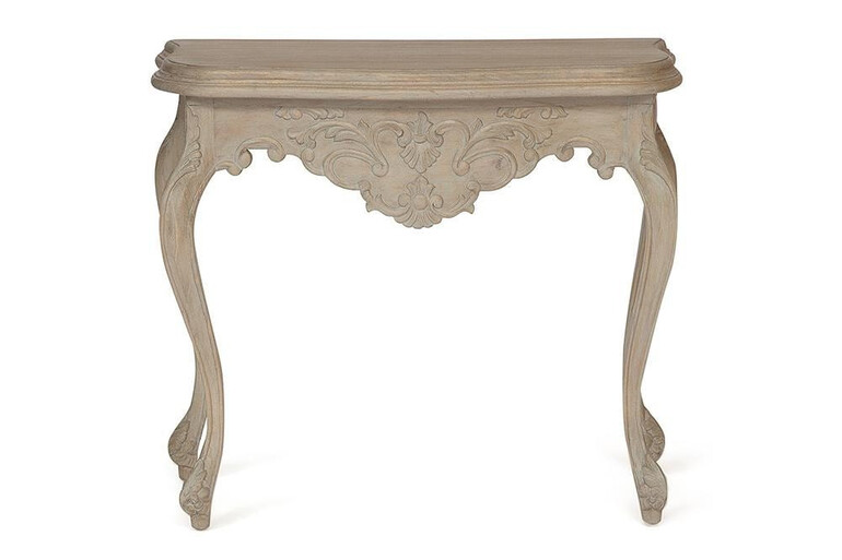 Роскошный консольный стол Secret de Maison NEUILLY в изысканном стиле прованс выполнен из массива красного дерева. Изящные линии, элегантный дизайн и благородство формы – этот предмет интерьера станет оригинальным украшением вашего дома, привнесет в него неповторимый шарм и очарование. Консоль может служить подставкой под цветы, предметы декора, удобна для хранения украшений и других мелочей. Модель изготовлена из массива красного дерева, тонировка полупрозрачной краской и обработка маслом подчеркивают фактуру натуральной древесины и ее природную красоту. Обработанное по данной технологии дерево обладает повышенной прочностью, долговечностью и не требует специального ухода. Модель прекрасно сочетается с мебелью из коллекции VERSAILLES, поставляется в собранном виде.