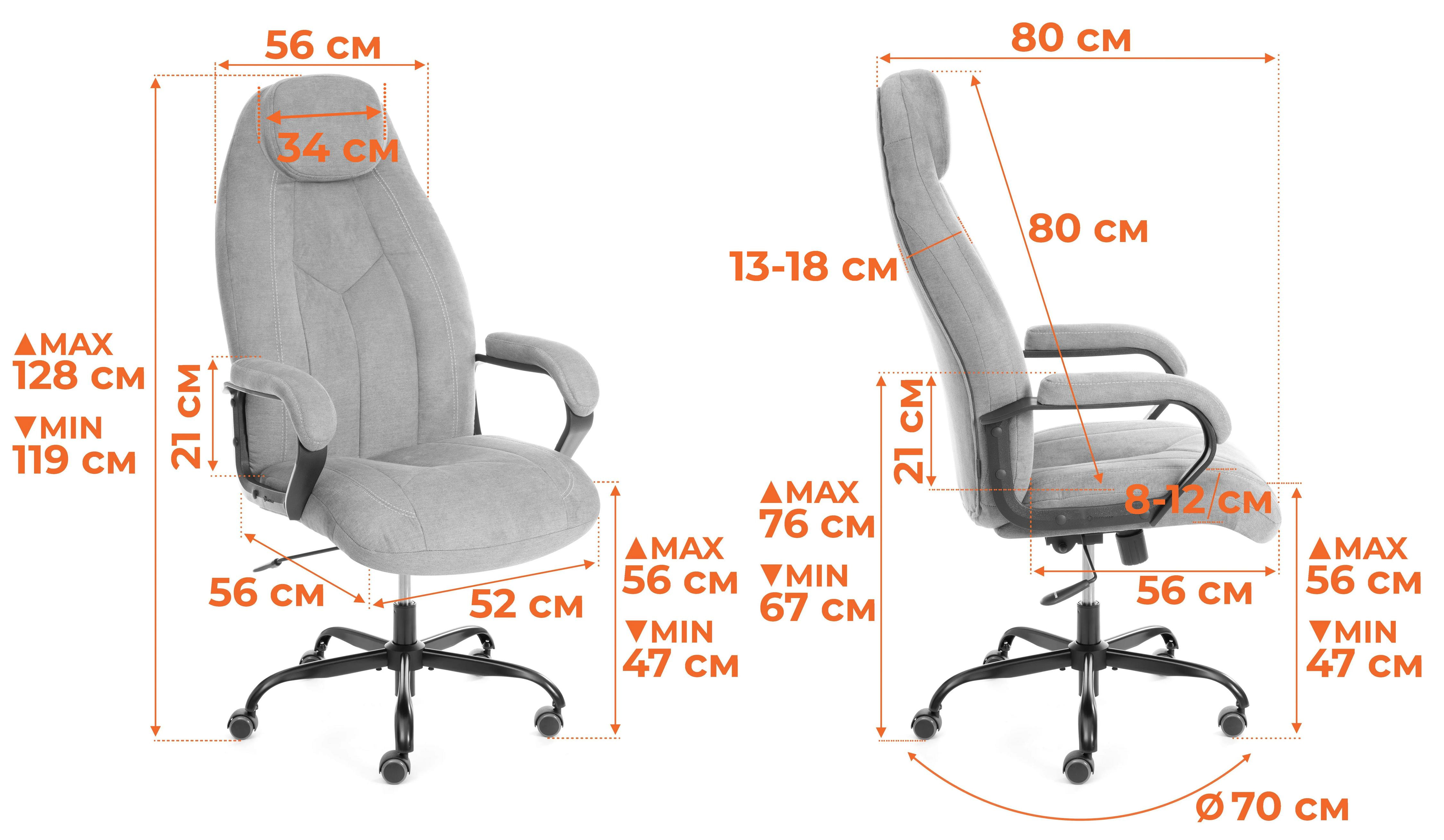Практичное и функциональное компьютерное кресло Boss metalBL – необычный акцент в пространстве вашего дома или офиса. Модель прекрасно подойдет как для кабинета руководителя, так и для переговорной комнаты. Сиденье с мягким наполнителем из пенополиуретана стандартной плотности (до 35 кг/м2) уменьшит усталость при длительной работе. Каркас офисного кресла изготовлен из фанеры толщиной до 15 мм. Такой материал обладает отличными эксплуатационными качествами, прочностью и долговечностью. Кресло регулируется по высоте и наклону с фиксацией в нескольких положениях до 15 градусов. Жесткость механизма качания настраивается при помощи специального барабана. Стальная (разборная) крестовина надежна, основательна и устойчива. Ролики из полиуретана с прорезиненными вставками не шумят при перемещении, не оставляют следов на напольном покрытии. Ролики и крестовина в креслах бренда TETCHAIR соответствуют стандарту BIFMA. Во всех креслах бренда TETCHAIR используются газлифты 3 класса, он способен выдерживать вес до 120 кг. Удобный подголовник и фиксированные пластиковые подлокотники с мягкими накладками снизят нагрузку на шею и плечевой пояс. Оригинальное офисное кресло Boss metalBL , обитое высокопрочной износостойкой экокожей или флоком, представлено в нескольких вариантах. Обивка используемая при изготовлении кресла, выдерживает до 50 000 циклов на истирание по Мартиндейлу. Эргономичная модель подчеркнет безупречный вкус владельца, будет радовать своей долговечностью, презентабельностью и практичностью продолжительное время. Максимальная нагрузка 120 кг. Модель поставляется в разобранном виде. Требуется простая сборка по прилагаемой инструкции.