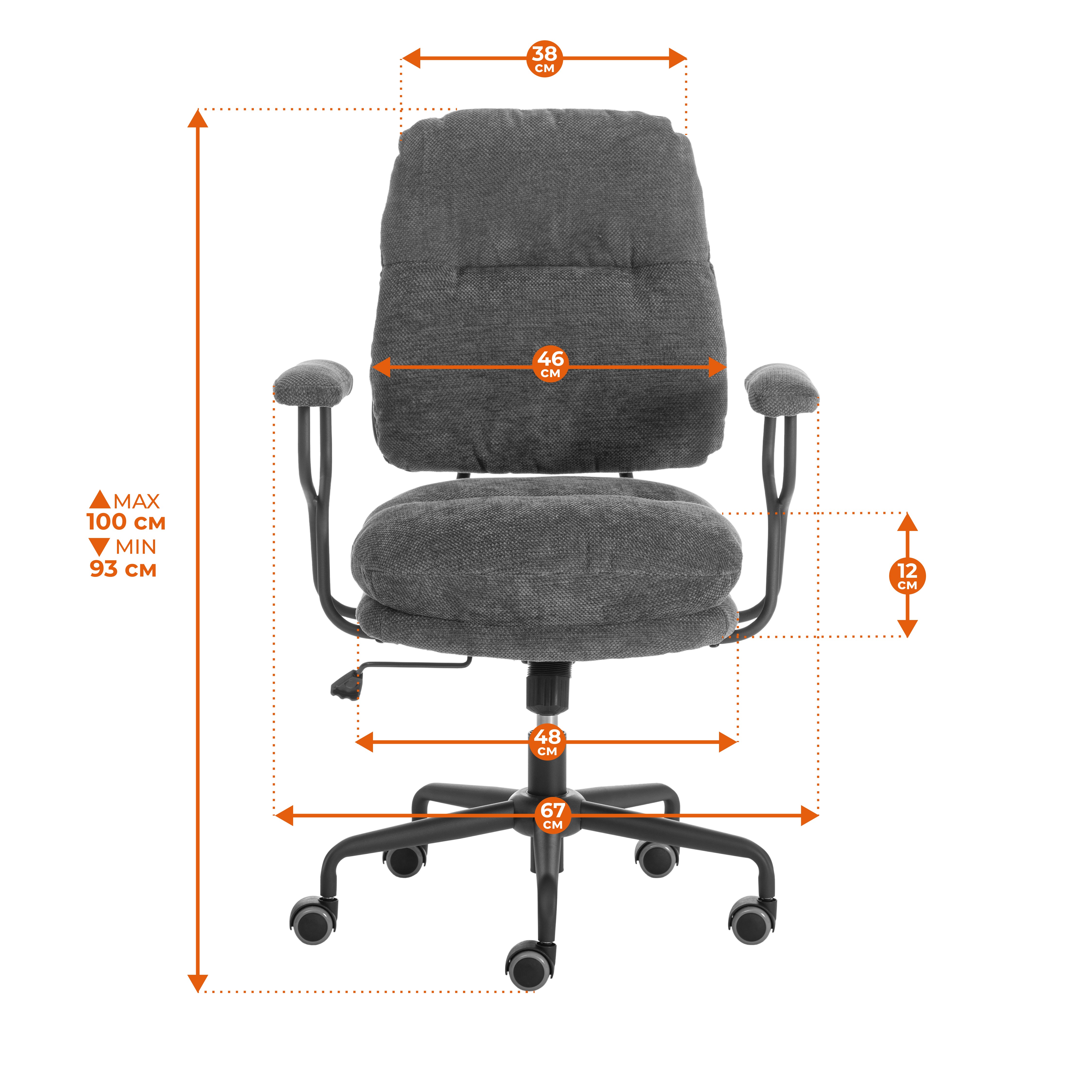 Фиксированные подлокотники: Металлические подлокотники с мягкими накладками обеспечивают комфортную поддержку рук. Размер накладки на подлокотники: длина 28,5 ширина 9 см, высота 4 см.