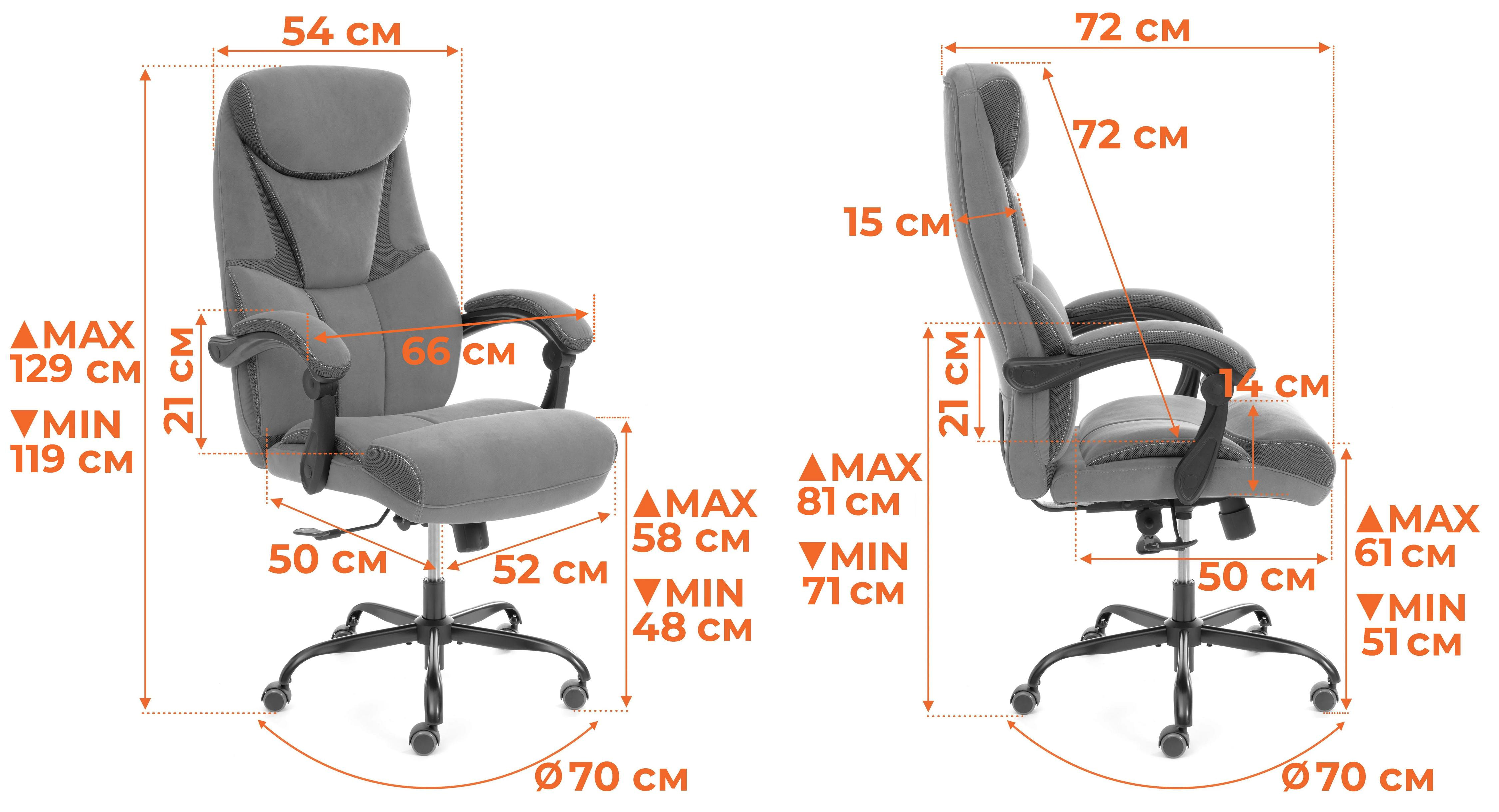 - Габаритная глубина кресла (от крайней задней точки спинки до передней точки сиденья) 73