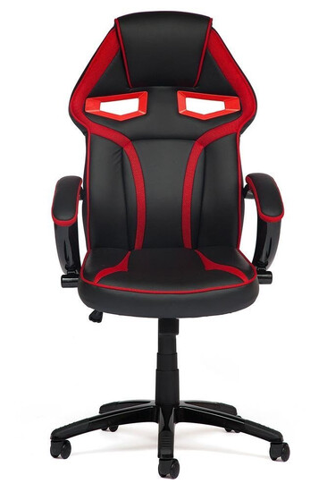 Кресло «ДжетКар» (JetCar) (Искусственная чёрная кожа + красная сетка)