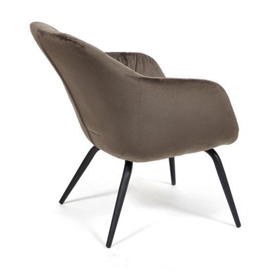 Приятные округлые формы кресла DREIFUS из коллекции Modern украсят собой любую домашнюю обстановку. Оно хорошо впишется в интерьер гостиной, кухни или столовой. Плавные линии подлокотников, обволакивающие формы сиденья и спинки располагают к приятному времяпрепровождению и комфортному отдыху в течение длительного времени. Мягкая, бархатистая и приятная на ощупь обивка подарит максимальный комфорт и уют. Благодаря широко поставленным металлическим ножкам, модель надежна и основательна. Тканевая обивка из велюра коричневого цвета не мнётся, не меняет форму, пропускает воздух, экологична и гипоаллергенна. Это удобное и уютное кресло станет любимым предметом интерьера в вашем доме. Кресло подойдёт для гостиной, для кухни, для спальни или для кабинета.Кресло очень простое в сборке, инструкция по сборке прилагается.