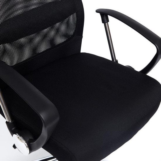 Визуальная легкость и простота дизайна компьютерного кресла PROFIT из коллекции OFFICE помогут создать атмосферу уюта и спокойствия в вашем доме или офисе. Функциональная модель отлично подойдет для переговорной комнаты или кабинета руководителя. Металлический каркас кресла надежен и устойчив. Мягкое сиденье с наполнителем из пенополиуретана стандартной плотности не теряет форму со временем и не деформируется. Сочетание металлического каркаса и тканевой обивки черного цвета выглядит стильно и оригинально. Удобные пластиковые подлокотники с хромированными вставками помогут расположиться с комфортом во время переговоров или работы за компьютером. Благодаря надежному механизму можно быстро и легко регулировать высоту компьютерного кресла. Наклон фиксируется в одном положении, что помогает снять напряжение с поясницы в течение рабочего дня. Устойчивая хромированная крестовина диаметром 640 мм изготовлена из прочного и надежного металла. Полиамидные прорезиненные ролики не царапают поверхность, подойдут для использования на паркете и ламинате. Компьютерное кресло PROFIT будет уместно в помещении с любым дизайнерским решением, удивит вас своей надежностью и износостойкостью. Максимальная нагрузка модели 120 кг. Кресло поставляется в разобранном виде. Инструкция по сборке прилагается.