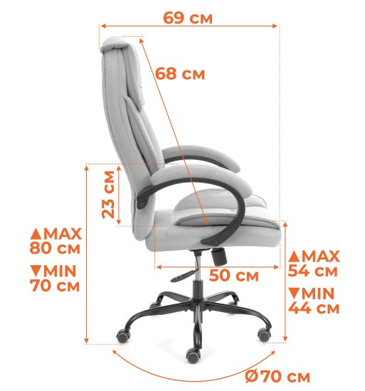 - Габаритная глубина кресла (от крайней задней точки спинки до передней точки сиденья) 69