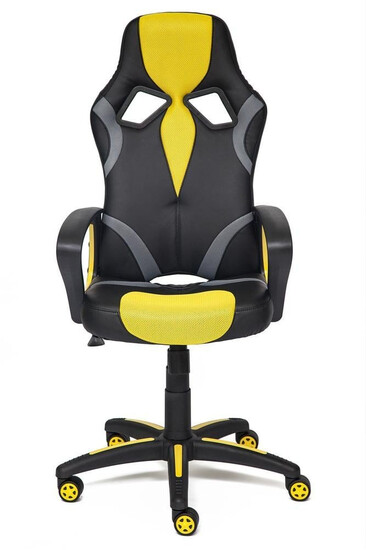 Кресло компьютерное «Ранер» (Runner) (Искусственная черная кожа + жёлтая сетка)