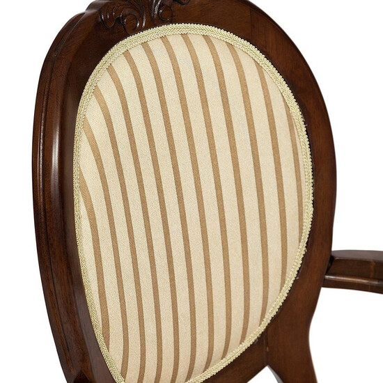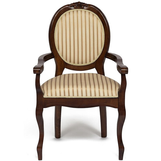 Классическое кресло с деревянным каркасом и мягкими сиденьем и спинкой.