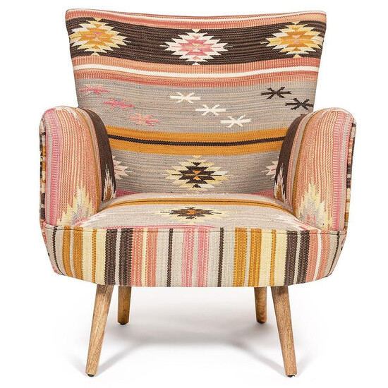 Коллекция «Kilim» от Secret de Maison представляет этнические кресла из мягкого хлопкового килима ручной работы с ножками и рамой из дерева манго.