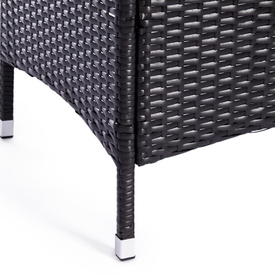 Практичный обеденный сет из коллекции LOUNGE идеально дополнит образ загородного дома, кафе или ресторана. Оригинальный комплект будет отлично смотреться на веранде, террасе или в саду. В обеденный сет входит стол и четыре стула. Каркас из металла прочен и надежен. Удобная спинка и вместительное сиденье изготовлены из искусственного ротанга. Такой материал устойчив к воздействиям влаги, перепадам температур и ультрафиолету. Стол квадратной формы с поверхностью из закаленного стекла крепок, основателен, не требует специального ухода, не деформируется при воздействии повышенных температур. Мягкие подушки изготовлены из водоотталкивающего полиэстра с пропиткой от дождя, не меняют форму со временем, легко чистятся, будут радовать своим первоначальным видом долгие годы. Искусственный ротанг черного цвета в сочетании с серой тканью добавит вашему интерьеру элемент индивидуальности и элегантности. Изысканный обеденный комплект из коллекции LOUNGE предполагает комфортное размещение до четырех человек, способствует приятному общению и расслабленному отдыху. Гарнитур поставляется в разобранном виде, необходима несложная сборка по прилагаемой инструкции.