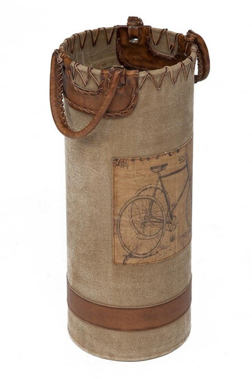 Стильная подставка для зонтов Secret De Maison BICYCLE из коллекции LOFT ART – идеальное решение для эстетичного хранения зонтов, которое прекрасно впишется в интерьер любой прихожей. Она не занимает много места, способствует поддержанию порядка и способна стать ярким акцентом, привлекающим внимание. Качественная ручная работа и использование натуральных материалов выгодно выделяют подставку для зонтов BICYCLE в интерьере. Отделка из кожи буйвола в сочетании с натуральной тканью, винтажным принтом и ручными стежками из кожаного жгута подчеркивают особенную красоту и оригинальность изделия. Компактные размеры и кожаные ручки позволяют расположить подставку в любом удобном месте и переставить при необходимости. Прочный каркас из металла надежен, устойчив, прост в уходе и способен сохранить свой первоначальный вид на долгие годы.