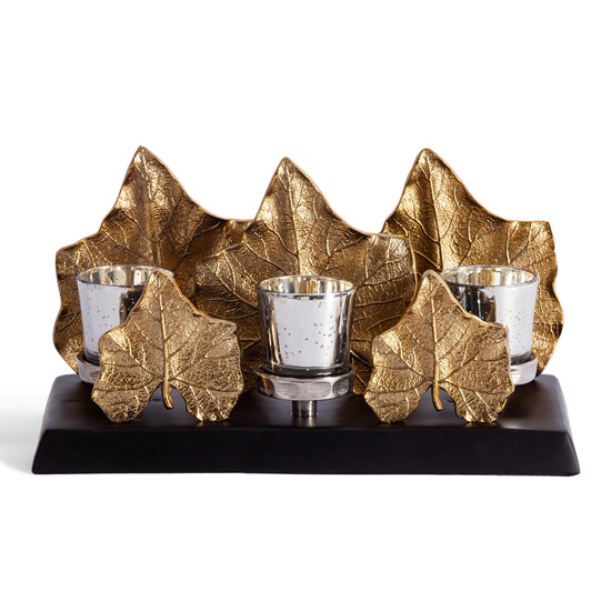 Изысканный подсвечник Secret De Maison MAPLE2 из коллекции SILVER удачно сочетает в себе качество и стиль, красоту и функциональность. Этот выразительный аксессуар, декорированный пятью золотыми кленовыми листьями разного размера, добавит шарм, уют и великолепие вашей спальне, гостиной или столовой. Дополните элегантный подсвечник тремя свечами, и он подарит вам хорошее настроение, поможет расслабиться и отдохнуть после тяжелого дня. Уникальное изделие выполнено из алюминиевого сплава, не требующего специального ухода и чистки. Безупречное сочетание золотого (Gold) и черного цветов (Black powder coated) создаст в помещение атмосферу богатства и роскоши, сделает интерьер ярче и выразительнее. Стильный подсвечник восхитит вас удобством использования, безопасностью, долговечностью и привлекательностью.