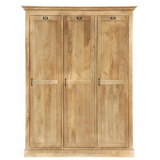 Элегантный платяной шкаф Secret De Maison из массива манго выполнен в французском стиле. Конструкция закрытого типа отличается вместительностью, эстетикой и функциональностью. Шкаф состоит из трех отделений. Удобные полки по бокам и деревянная штанга в центре обеспечивают возможность хранения огромного количества предметов. Металлические рамки для ярлыков на дверях шкафа служат интересным акцентом. Винтажная фурнитура и элегантный резной карниз подчеркивают красоту и благородство изделия. Шкаф из массива манго обработан прозрачным маслом и не требует специального ухода. Модель относится к коллекции ACADEMY, поставляется в собранном виде.