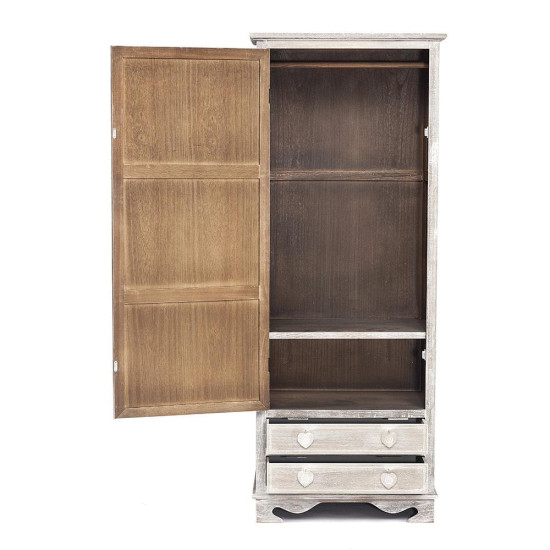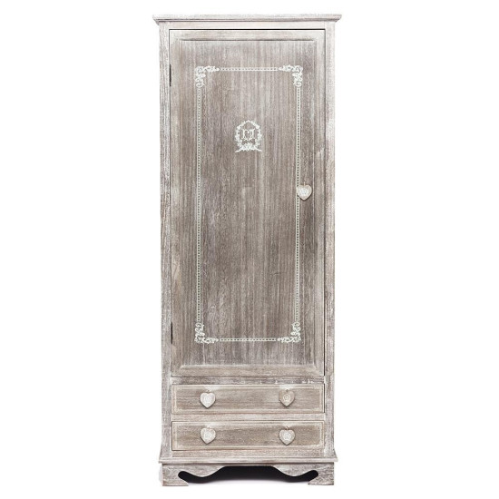 Элегантный платяной шкаф Secret De Maison в изысканном французском стиле выполнен из массива павловнии. Изящный силуэт и идеальные пропорции позволят ему вписаться практически в любой интерьер. Шкаф состоит из одного отделения с распашной дверцей. Вместительная полка, деревянная штанга и два выдвижных ящика обеспечивают возможность хранения огромного количества предметов. Резное основание ручной работы, оригинальные ручки из дерева и натуральной пеньки, отбеленные фасады с эффектом старения, украшенные узорами в стиле французского фамильного герба, подчеркивают красоту и благородство изделия. Шкаф изготовлен из массива павловнии, тонировка и покрытие натуральным маслом подчеркивают природную красоту древесины. Обработанное по данной технологии дерево не требует сложного ухода и будет долгие годы радовать вас своим первоначальным видом. Модель отлично гармонирует с мебелью из коллекции LILOU, поставляется в собранном виде.