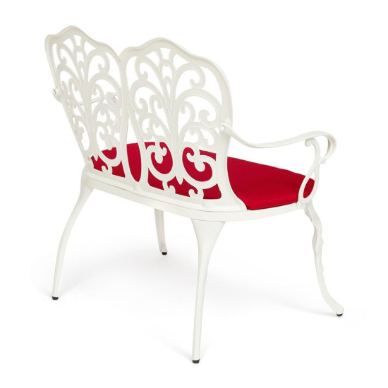 Изысканная садовая скамья с подушкой Secret De Maison Symphonie из коллекции JARDIN будет прекрасно смотреться в загородном доме, на дачной веранде, отлично подойдёт для отдыха на приусадебном участке. Высокое качество и красота неповторимых ажурных узоров, выполненных вручную, добавит благородства в ваш ландшафтный дизайн, подчеркнет вкус и статус своего владельца. Эргономичная спинка, удобные подлокотники и мягкая подушка на сиденье помогут создать уютное и комфортное место для отдыха на свежем воздухе. Эта функциональная, прочная и красивая скамья займет важное место в оформлении вашего сада. Тканевая обивка из полиэстера практична, проста в уходе, прослужит вам долгие годы, сохраняя свой первоначальный вид. Прочный каркас, выполненный из литого алюминия и покрашенный в белый цвет, надежен, устойчив к любым погодным условиям, способен выдерживать большие нагрузки. Изделие прекрасно сочетается с мебелью из коллекции JARDIN, поставляется в разобранном виде.