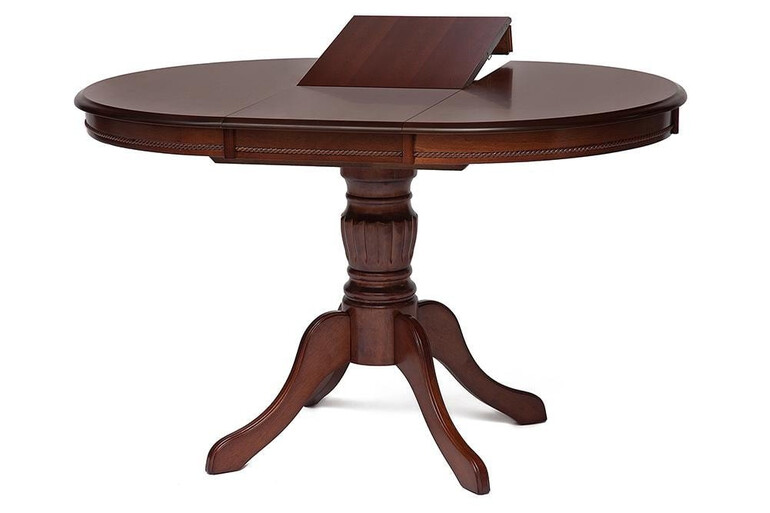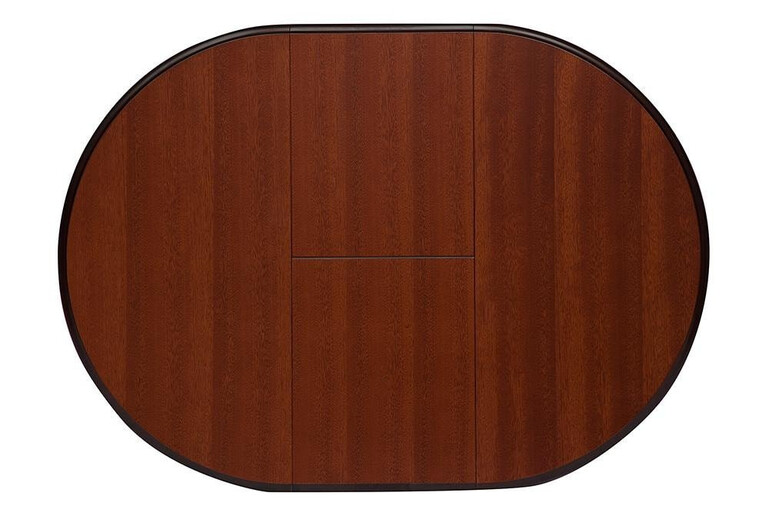 Классический раскладной обеденный стол овальной формы для столовой или гостиной. Вставка убирается под столешницу посредством удобного механизма. Столешница с натуральным шпоном, основание сделано из натуральной гевеи. Данная модель помимо эстетических и практических качеств, отличается еще и прочностью. Стол прослужит Вам долгие годы, не требуя особого ухода. Модель выполнена в коричневом в рыжину цвете.