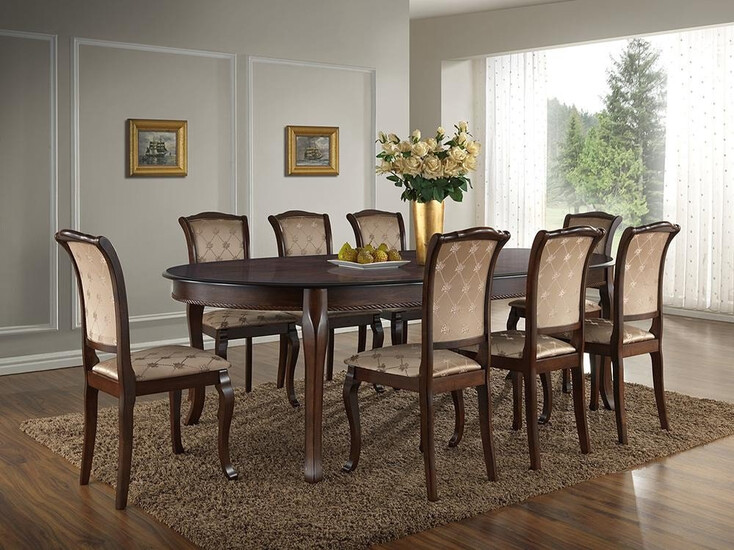 Классический раскладной обеденный стол. Вставка убирается под столешницу посредством удобного механизма. Столешница с красивым шпоном, основание сделано из натуральной гевеи. Данная модель помимо эстетических и практических качеств, отличается еще и прочностью. Стол прослужит Вам долгие годы, не требуя особого ухода.