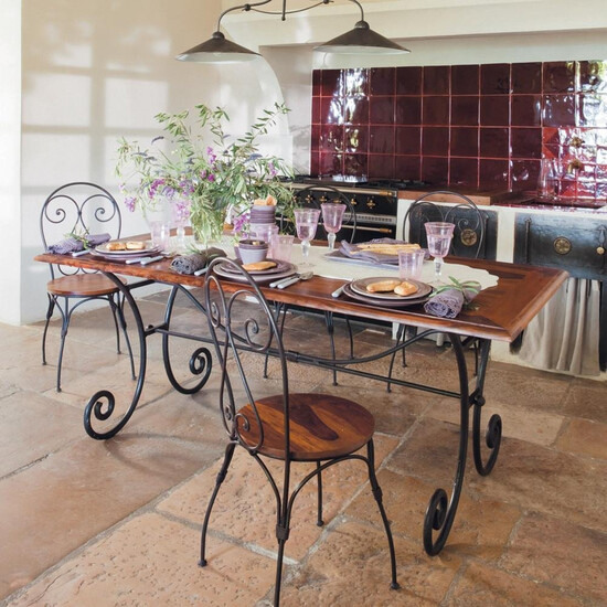 Большой обеденный стол «Люберон» изготовлен из массива палисандра — дерева, знаменитого своими уникальными качествами, красивой текстурой и долговечностью. Эффектный рисунок подстолья выполнен в лучших традициях французской кованной мебели прованса. Универсальная форма столешницы и ее удобный размер позволяют использовать стол не только в качестве обеденного, но и как рабочее место. Что особенно актуально для загородного интерьера. В дополнение к этой модели мы рекомендуем использовать приставную консоль «Люберон», так вы сможете увеличить если рабочую поверхность столешницы.