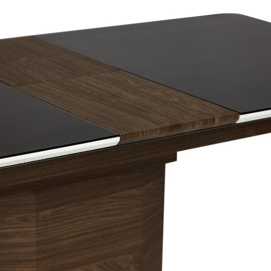 Большой обеденный стол RADCLIFFE из коллекции Modern станет украшением вашей обеденной зоны. Устойчивое основание, массивная ножка и столешница из мдф, покрытая закаленным стеклом темно-коричневого цвета, придают столу особенную красоту и оригинальность. При необходимости можно быстро и легко увеличить размеры стола с помощью центральной секции. Раздвижная конструкция позволяет грамотно организовать пространство и комфортно разместить от шести до восьми человек. Столешница выполнена из мдф и покрыта закаленным стеклом, она проста в уходе, выдержит воздействие жидкостей и тепла, будет долгие годы радовать вас своим первоначальным видом. Стол прекрасно сочетается со стульями из коллекции Modern. Стол отлично подойдёт для гостиной, для кухни или для загородного дома. Стол очень прост в сборке, инструкция по сборке прилагается.