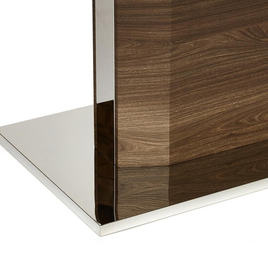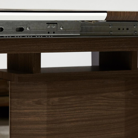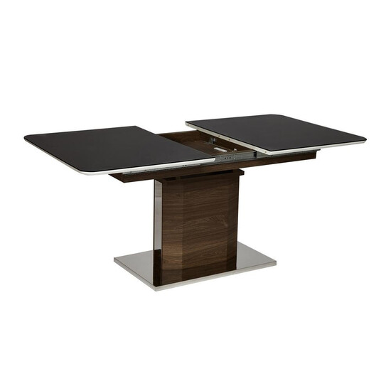 Большой обеденный стол RADCLIFFE из коллекции Modern станет украшением вашей обеденной зоны. Устойчивое основание, массивная ножка и столешница из мдф, покрытая закаленным стеклом темно-коричневого цвета, придают столу особенную красоту и оригинальность. При необходимости можно быстро и легко увеличить размеры стола с помощью центральной секции. Раздвижная конструкция позволяет грамотно организовать пространство и комфортно разместить от шести до восьми человек. Столешница выполнена из мдф и покрыта закаленным стеклом, она проста в уходе, выдержит воздействие жидкостей и тепла, будет долгие годы радовать вас своим первоначальным видом. Стол прекрасно сочетается со стульями из коллекции Modern. Стол отлично подойдёт для гостиной, для кухни или для загородного дома. Стол очень прост в сборке, инструкция по сборке прилагается.