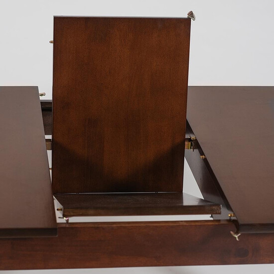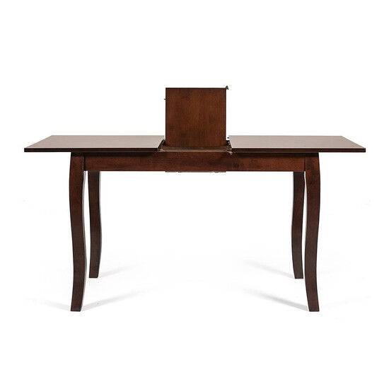 Уникальный дизайн классического обеденного стола Гефест (Hephaestus) из Дельфийской коллекции добавит элемент индивидуальности вашему пространству, создаст приятный микроклимат в гостиной, столовой или на кухне, в загородном доме или квартире. Прочный каркас стола и слегка изогнутые ножки изготовлены из массива гевеи - надежной и основательной древесины, не требующей сложного ухода. Столешница выполнена из МДФ, устойчива к воздействию влаги и температуры. При помощи дополнительной вставки с надежным раскладным механизмом поверхность стола увеличивается, что дает возможность разместить с удобством до шести человек. Модель изготовлена в благородном цвете темный орех (Cuppuchino), что позволяет использовать стол Гефест как в темном интерьере, так и в светлой обстановке для создания контраста. Оригинальный дизайн, крепкое основание, изысканные ножки, надежный раздвижной механизм и прочная столешница будут доставлять удовольствие и восхищать своего владельца долгие годы. Инструкция по сборке прилагается.