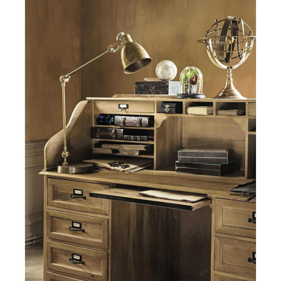 Великолепный стол-бюро Secret De Maison в винтажном стиле выполнен из массива манго. Изящные линии, элегантный дизайн и солидность – этот стол придаст индивидуальность вашему интерьеру и станет незаменимым атрибутом рабочего пространства. Винтажная фурнитура и фактура состаренной натуральной древесины подчеркивают красоту и благородство изделия. Прочный каркас стола из массива манго обработан натуральным маслом и не требует специального ухода. Стол по-современному функционален - широкая и удобная столешница, выдвижная полка для клавиатуры, множество объемных выдвижных ящиков разной глубины с рамками для этикеток, горизонтальные полки и вертикальные отсеки для хранения, боковые ограничители для документов — дизайн стола-бюро продуман до мелочей. Модель отлично гармонирует с мебелью из серии ACADEMY. Поставляется в собранном виде.