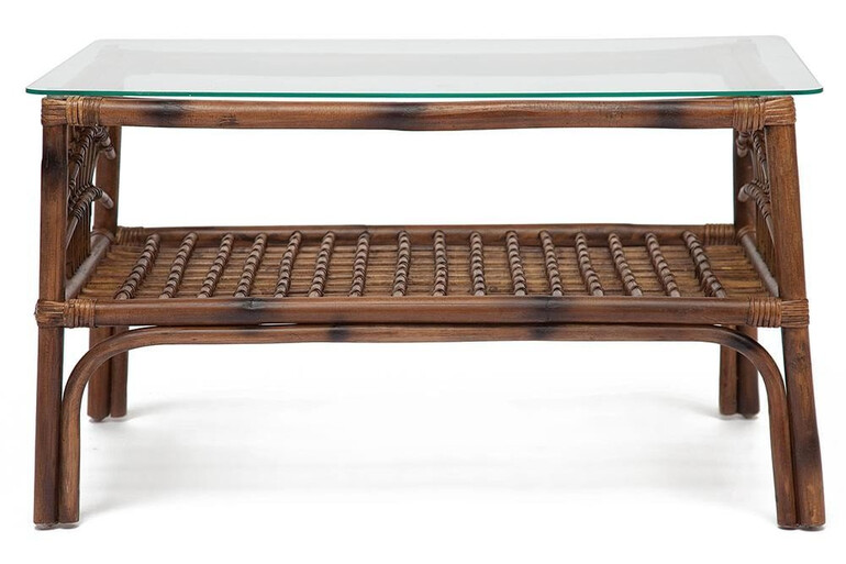 Стильный кофейный столик Secret De Maison Kavanto из коллекции VERANDA украсит собой любую домашнюю обстановку. Он будет элегантно смотреться на террасе загородного дома, на даче, поможет создать комфортную обстановку в квартире. Столешница из закаленного стекла, удобная нижняя полка для хранения мелочей и плетеный каркас, выполненный из натурального ротанга, выглядят презентабельно, придают изделию особую привлекательность и индивидуальность. Удобные размеры, легкий вес и простота конструкции позволяют быстро переместить столик при необходимости. Стекло обладает повышенной прочностью, долговечностью, способно многие годы не утрачивать свой первоначальный вид. Натуральный ротанг надежен, устойчив к повышенной влажности, выцветанию и царапинам. Столик идеально сочетается с креслом и диваном Kavanto, а также другой мебелью из коллекции VERANDA. Поставляется в собранном виде.