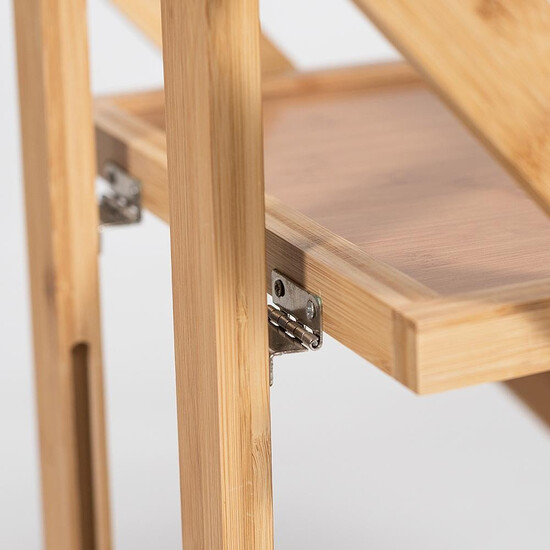 Коллекция «Экостиль» представляет легкие, прочные, изделия из натурального прессованного бамбука, с красивой фактурой, полностью экологичные, не подверженные влаге, для кухни, ванной и жилых комнат. Столик передвижной сервировочный складывающийся, на колесиках, с двумя полками. Материал: прессованный бамбук, поставляется 1 шт в 1 кор; объем 0,03 м3.