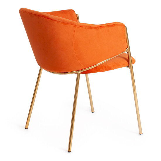 Великолепное кресло KRONOS из коллекции Modern – это удачное сочетание роскоши и элегантности. Оригинальная форма, благородный цвет обивки в сочетании с визуально легкими ножками в золотом цвете выгодно выделают кресло среди привычной мебели. Удобное сиденье, эргономичная спинка и высокие подлокотники обеспечивают комфортную посадку для продолжительного отдыха. Надежный каркас кресла изготовлен из металла. Мягкая, бархатистая и приятная на ощупь поверхность сиденья и спинки подарит максимальный комфорт и уют. Тканевая обивка из вельвета рыжего цвета не мнётся, не меняет форму, пропускает воздух, экологична и гипоаллергенна. Металлические ножки делают стул прочным и устойчивым. Он прослужит вам долгие годы, радуя своим первоначальным видом. Модель выглядит дорого, стильно, элегантно. Кресло подойдёт для гостиной, кухни, пальни, ресторана или кафе. Кресло очень простое в сборке, инструкция по сборке прилагается.
