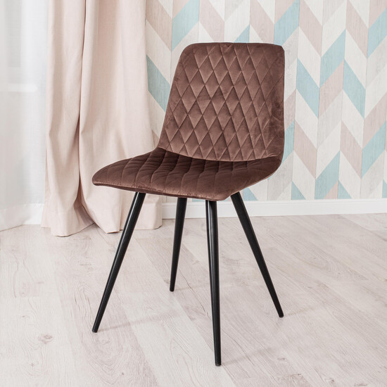 Удобный и практичный дизайн стула CHILLY X из коллекции Modern будет интересно смотреться практически в любом интерьере. Стул прекрасно дополнит обстановку гостиной, кухни или столовой. Подчеркнутый цветовой контраст изделия и его лаконичные формы идеально соответствуют концепции современного стильного пространства. Простая форма, стеганая коричневая обивка и тонкие металлические ножки черного цвета придают стулу особую привлекательность, оригинальность и визуальную легкость. Мягкое сиденье и спинка позволяют комфортно расположиться после трудового дня за журналом или чашкой чая. Практичная тканевая обивка отличается устойчивостью к износу и долговечностью, благодаря чему стул не требует специального ухода и будет долгое время радовать вас своим первоначальным видом.