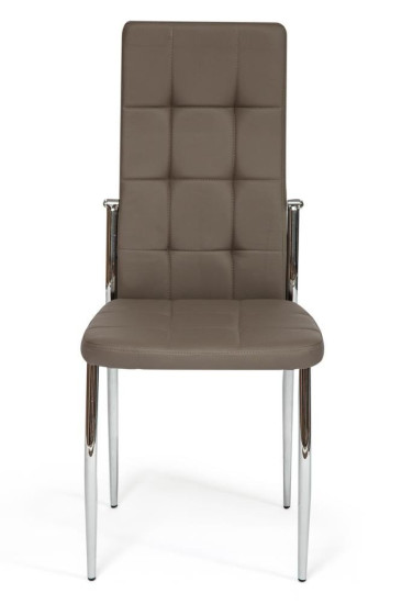 Легкий и элегантный дизайн стула ELFO из коллекции Modern придаст индивидуальность интерьеру и создаст особую атмосферу в вашем доме. Удобство, практичность и простота выгодно выделяют стул среди привычной мебели. Стеганая обивка из экокожи и хромированные металлические ножки выглядят стильно и привлекательно. Удобное сиденье и высокая спинка стула обеспечат комфорт на протяжении длительного времени. Широко поставленные прочные ножки делают модель крепкой и основательной. Обивка из экокожи пепельно-коричневого цвета – красивая, надежная, не требующая сложного ухода. Материал сочетает в себе мягкость и эластичность натуральной кожи с прочностью текстильных волокон. Стул будет радовать вас своим первоначальным видом долгие годы. Стул подойдёт для гостиной, для кухни, для спальни, для кабинета или для офиса. Стул очень прост в сборке, инструкция по сборке прилагается.
