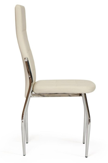 Легкий и элегантный дизайн стула ELFO из коллекции Modern придаст индивидуальность интерьеру и создаст особую атмосферу в вашем доме. Удобство, практичность и простота выгодно выделяют стул среди привычной мебели. Стеганая обивка из экокожи и хромированные металлические ножки выглядят стильно и привлекательно. Удобное сиденье и высокая спинка стула обеспечат комфорт на протяжении длительного времени. Широко поставленные прочные ножки делают модель крепкой и основательной. Обивка из экокожи цвета слоновой кости – красивая, надежная, не требующая сложного ухода. Материал сочетает в себе мягкость и эластичность натуральной кожи с прочностью текстильных волокон. Стул будет радовать вас своим первоначальным видом долгие годы. Стул подойдёт для гостиной, для кухни, для спальни, для кабинета или для офиса. Стул очень прост в сборке, инструкция по сборке прилагается.