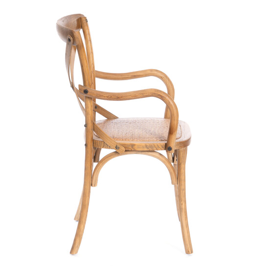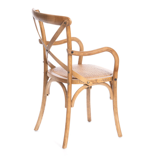 Классический французский стул "Кросс армчер" с подлокотниками выполнен из массива березы, сиденье выполнено из натурального ротанга. Элегантный удобный и прочный стул, который прослужит Вам долгие годы, не требуя специального ухода. Стул изготовлен из березы и ротанга, он украсит любой интерьер.
