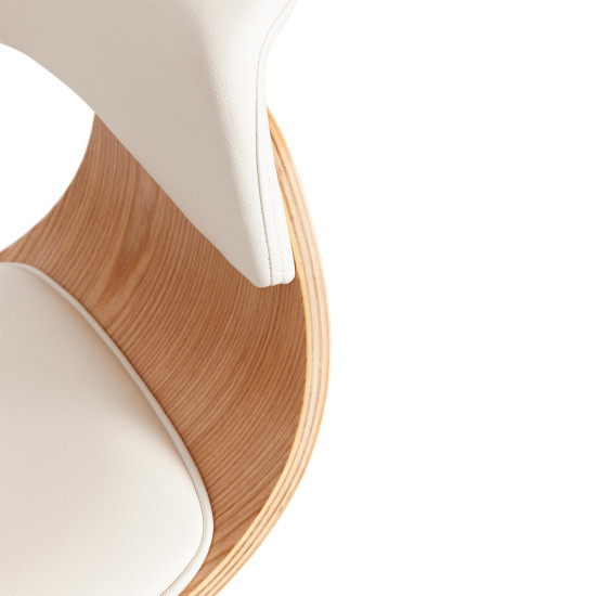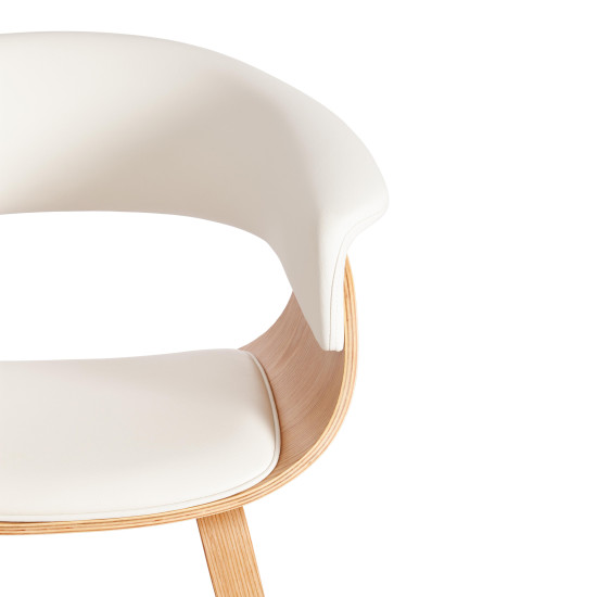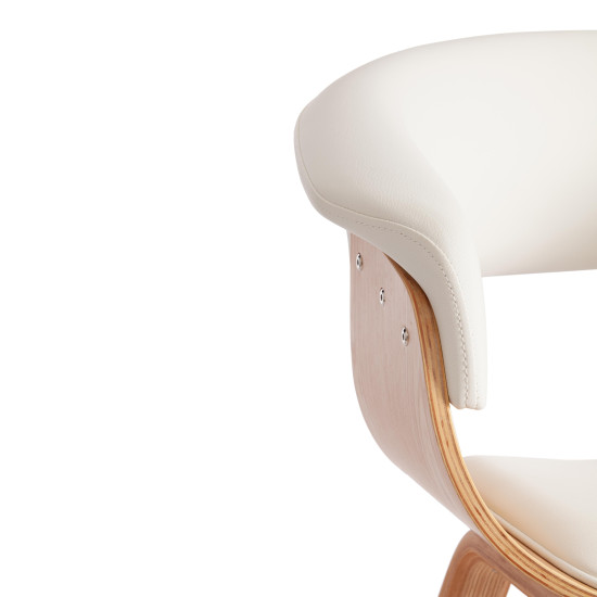 Его элегантная форма, выполненная из гнутой фанеры бука с отделкой из шпона клена, придаёт атмосфере естественность и теплоту. Обивка стула, выполненная из качественной экокожи, не только радует взгляд, но также отличается высокой износостойкостью, что гарантирует долгий срок службы и лёгкость в уходе.